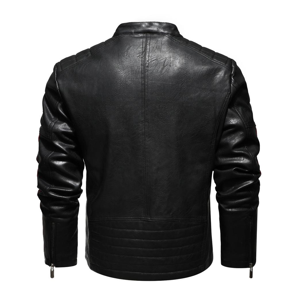 Мужская кожаная одежда. Трендовая мотоциклетная кожаная куртка, стиранная водой и хлопком. Кожаная куртка с вышивкой в тон.