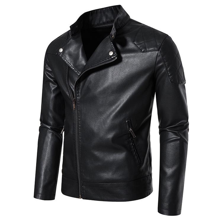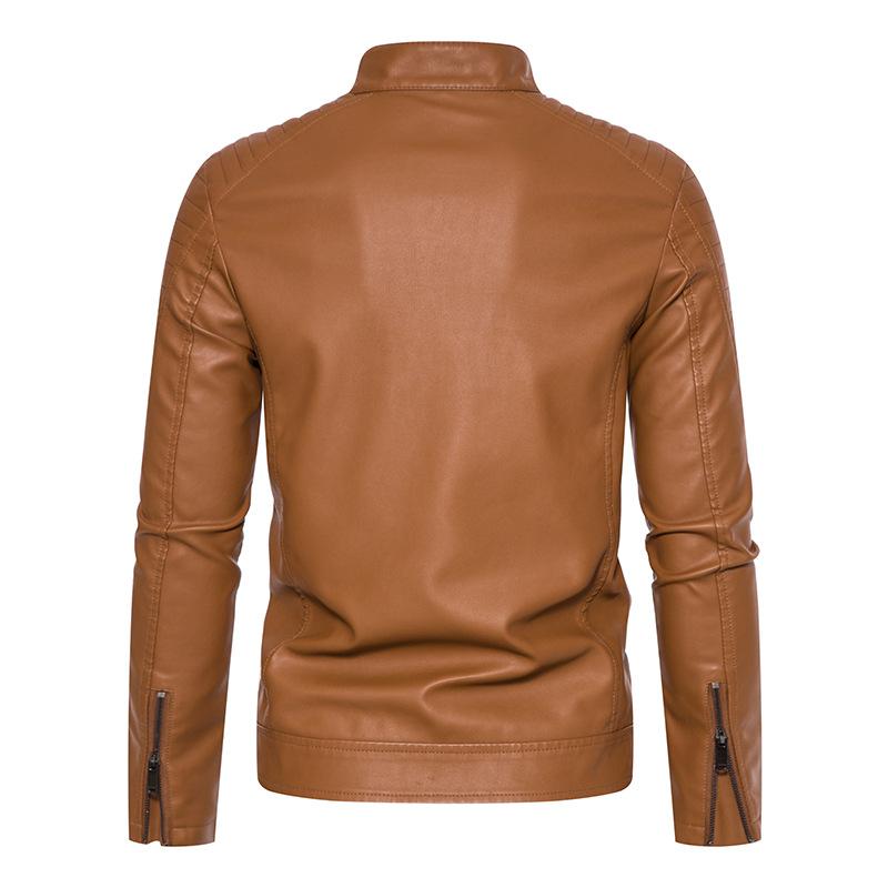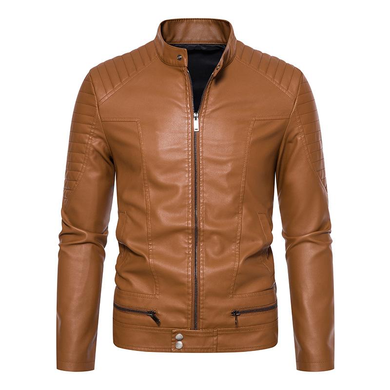 Кожаная куртка мужская с прямым подолом молодежная с карманами по боковым швам повседневная кожаная куртка без капюшона мужское пальто