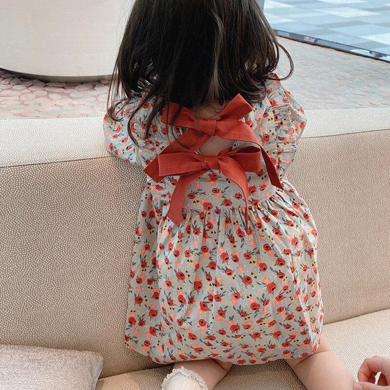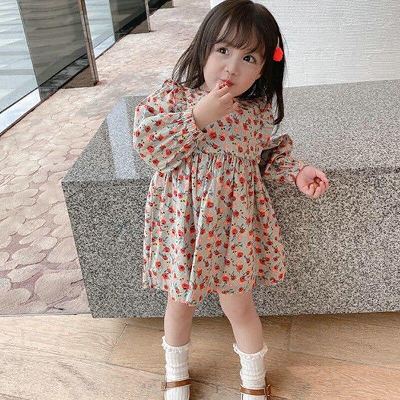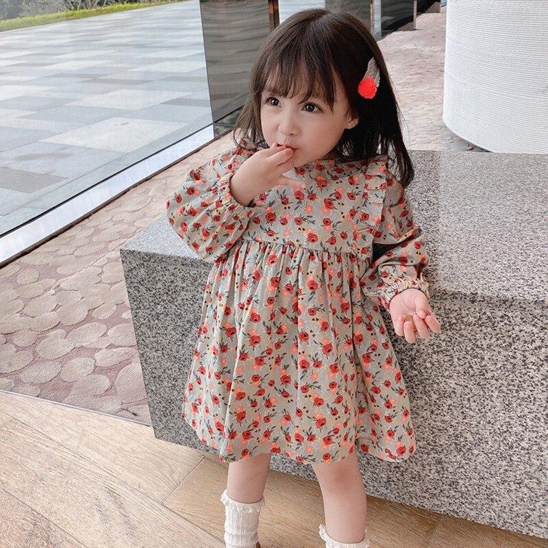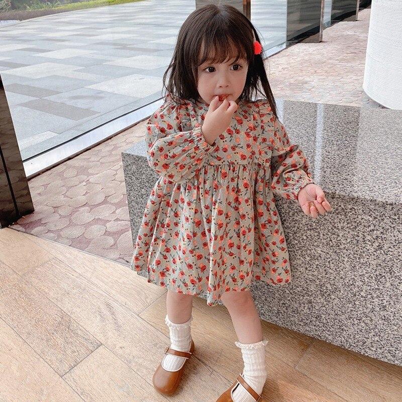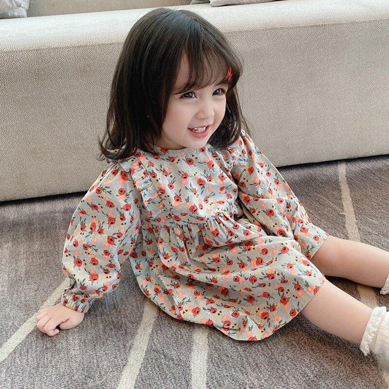 Милое платье с цветочным узором для девочек, повседневное платье для девочек, платье принцессы