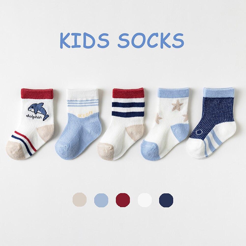 5 пар носков для маленьких мальчиков и девочек, милые хлопковые носки, мягкие дышащие детские носки в полоску/клетку/с героями мультфильмов, детские носки для малышей от 1 до 8 лет