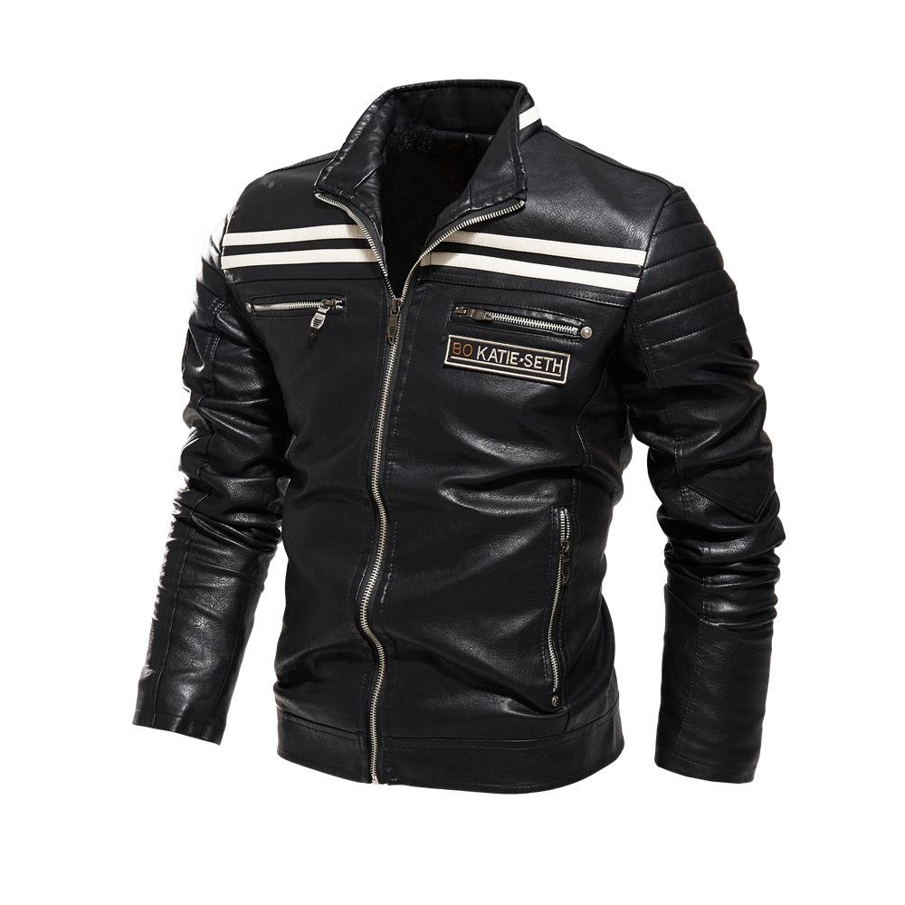 Мужская куртка, мотоциклетный костюм, новая куртка, кожаная куртка в такую же полоску, эксклюзивная плюшевая кожаная куртка для мужчин