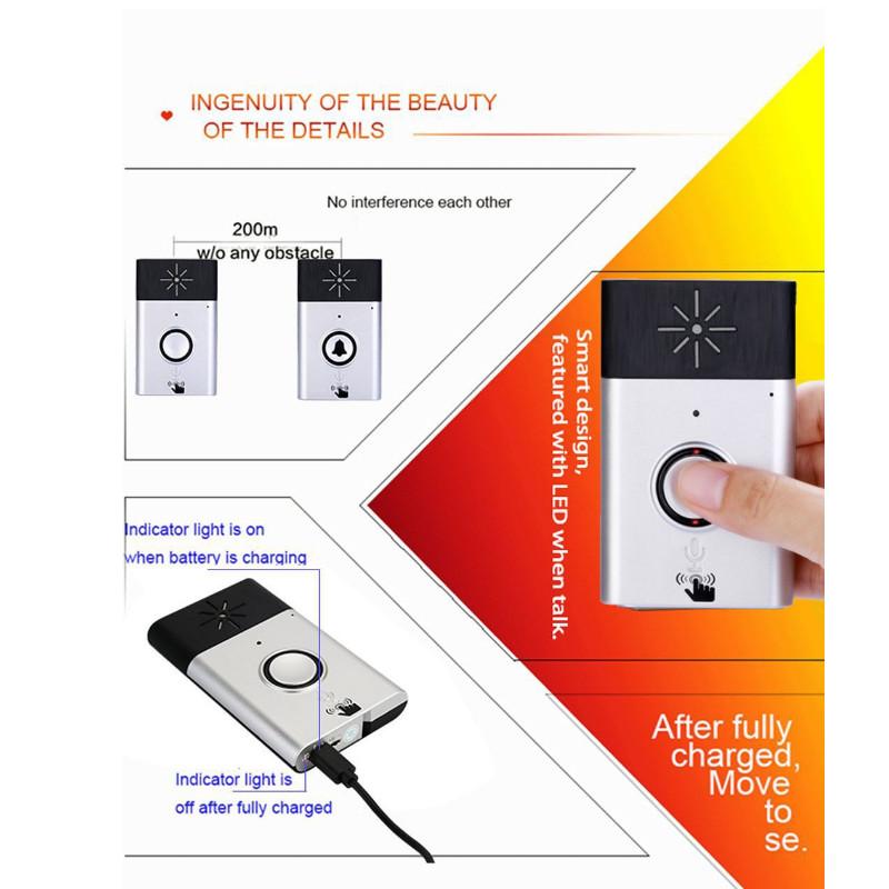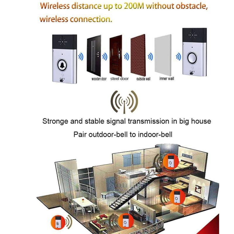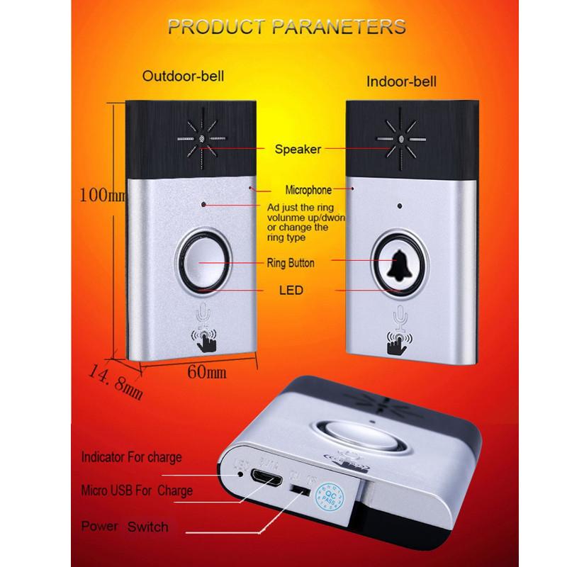 2-Way Talk Back:Беспроводной голосовой дверной звонок, разговор с посетителем через двусторонний голосовой домофон, знайте, кто посещает ваш дом, это более безопасно.