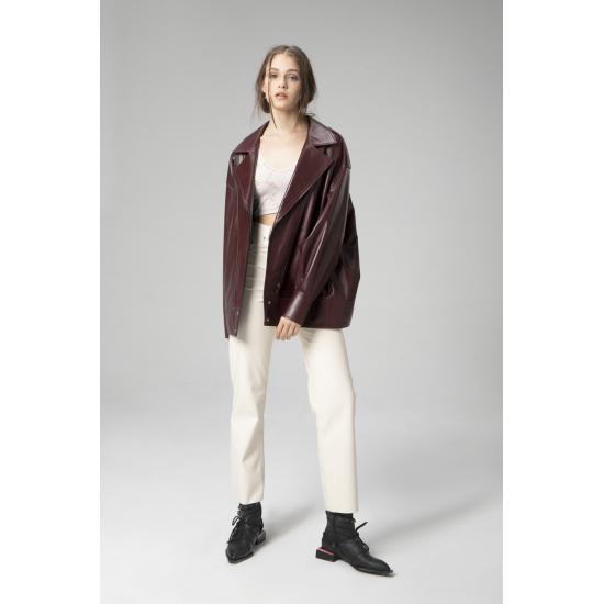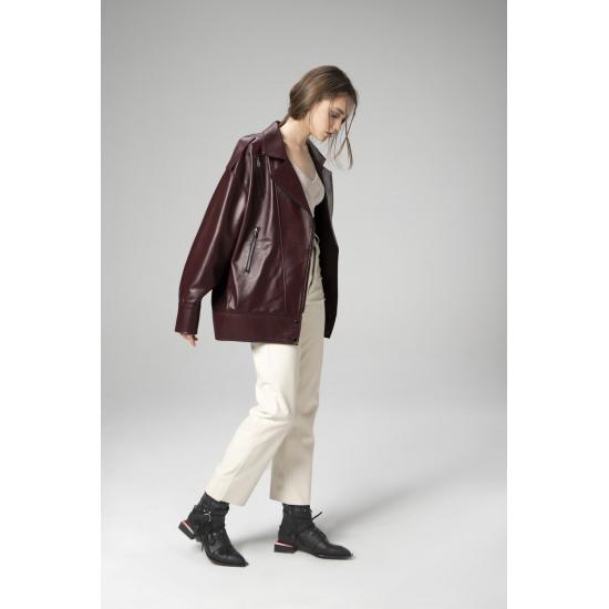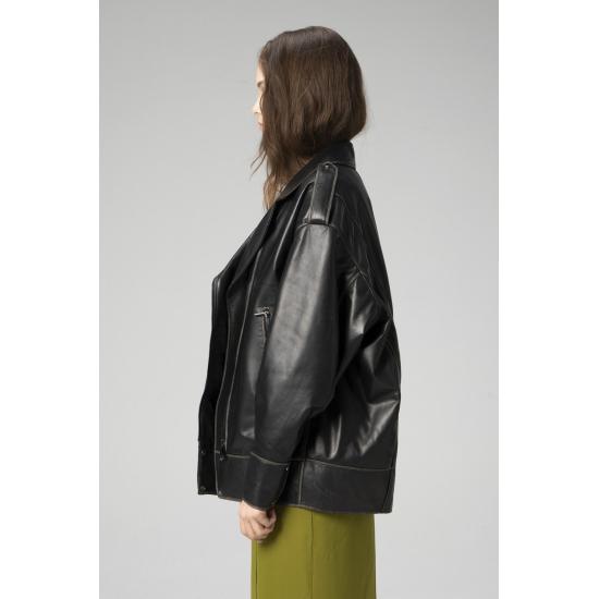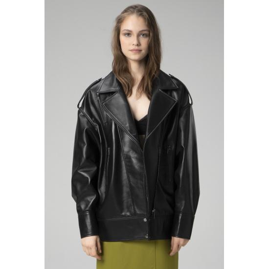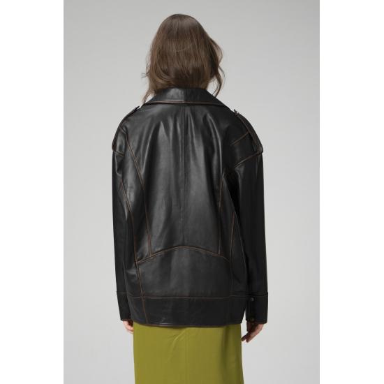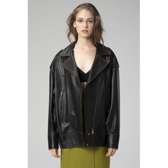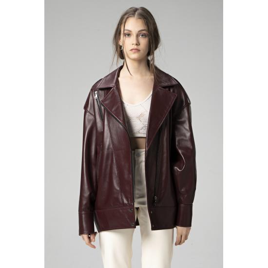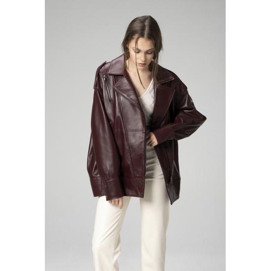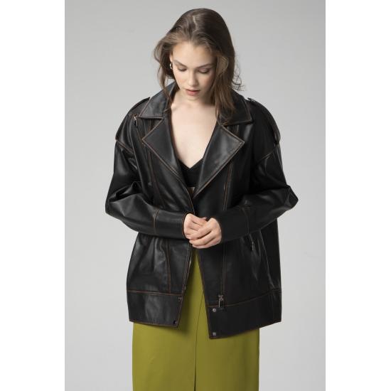Женское пальто Oversize Байкерское женское пальто из натуральной кожи