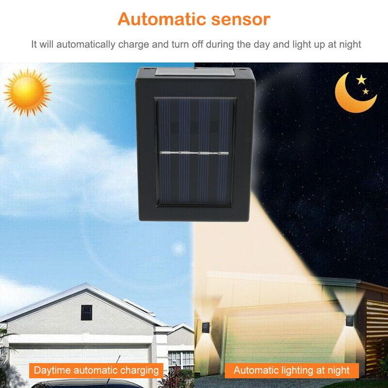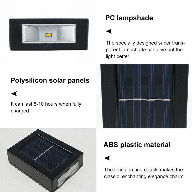 Применимо к наружным солнечным фонарям: Солнечный настенный светильник вверх и вниз - это своего рода настенный светильник на солнечных батареях с переключателем датчика управления светом. Днем он заряжается солнечной энергией, а ночью автоматически загорается.