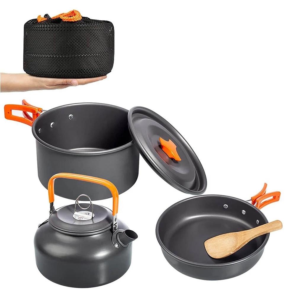 Набор посуды для кемпинга, алюминиевый кухонный набор, чайник, кастрюля, горшок для путешествий, пешего туризма, пикника, барбекю, посуда, оборудование
