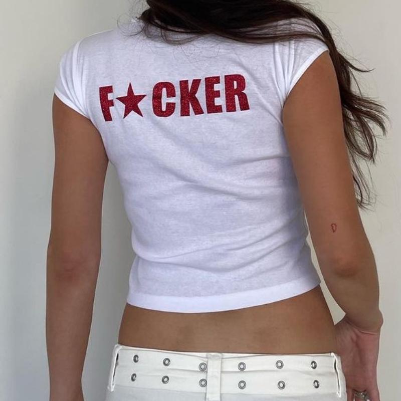 Y2K модные белые укороченные топы с буквенным принтом Fairy Grunge E-girl, облегающие уличные футболки с короткими рукавами в стиле Харадзюку, гот — купить товар онлайн с бесплатной доставкой по всему миру!