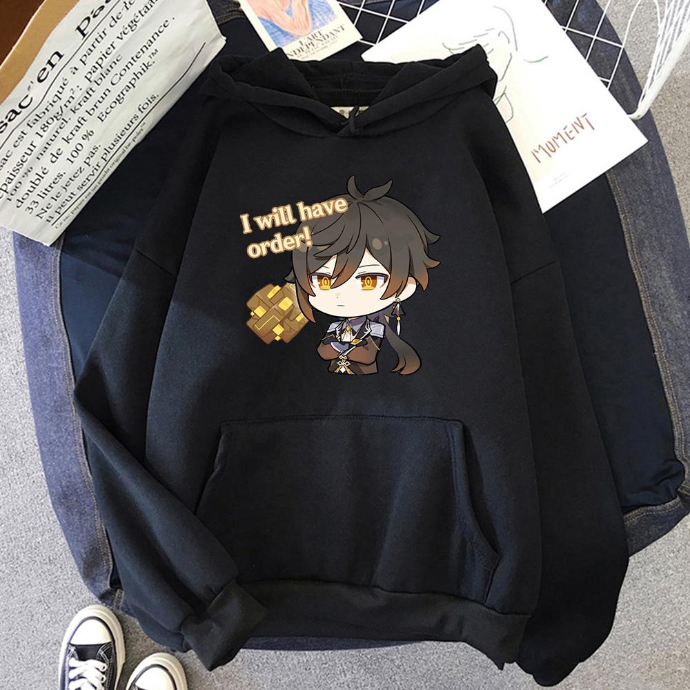 Горячая игра Genshin Impact Толстовка Мужская мода Harajuku Kawaii Стиль Мужская спортивная одежда Zhongli Толстовка с принтом Графические топы Одежда для пар