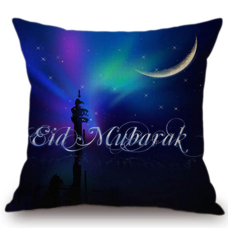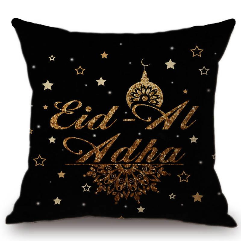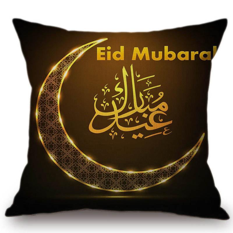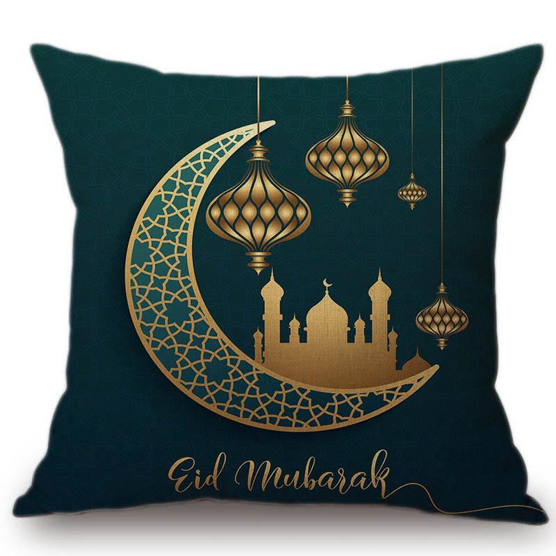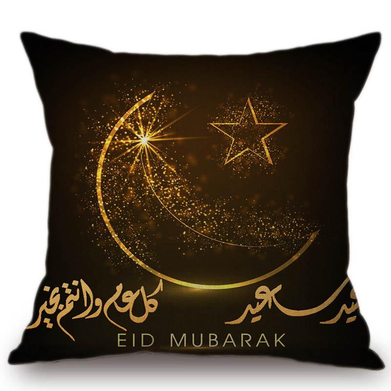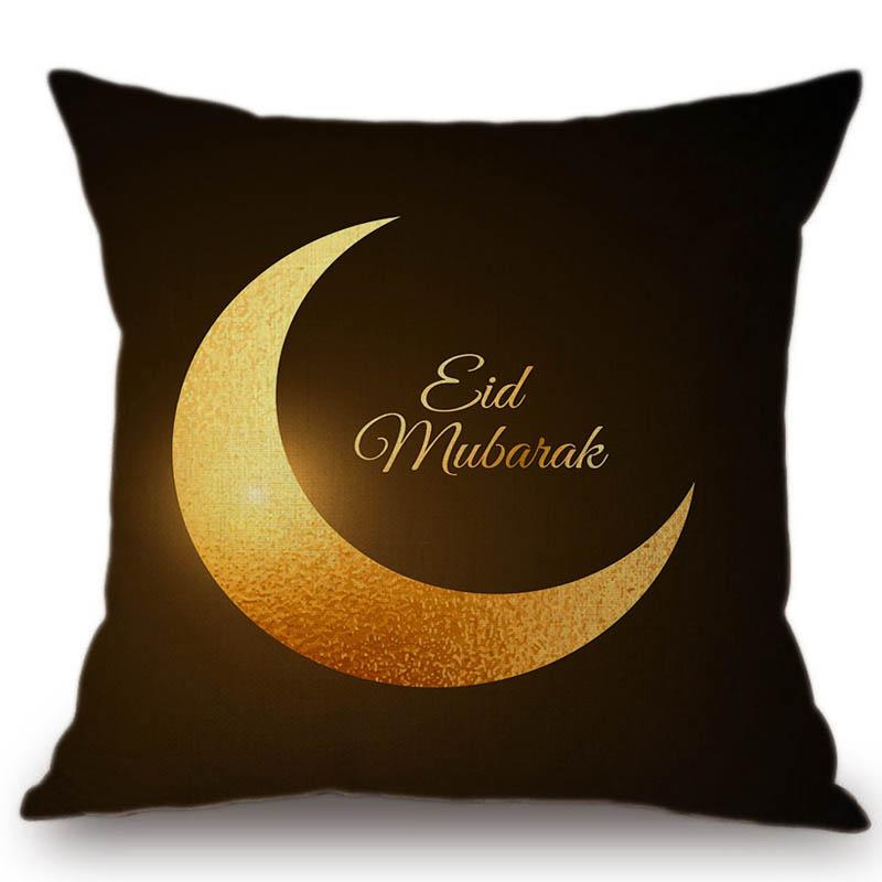 Ид Мубарак, домашняя декоративная подушка для дивана, мусульманская мечеть, полумесяц, золото, новолуние, хлопковое льняное кресло, подушка 45x45 см