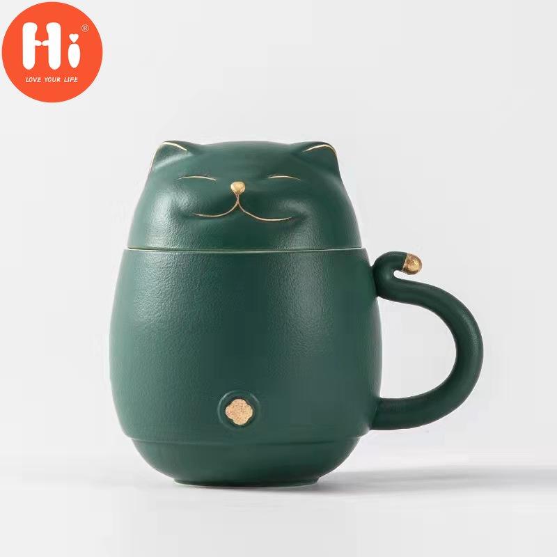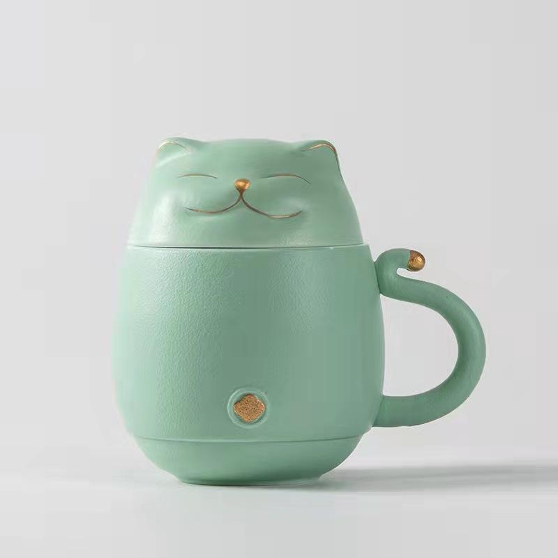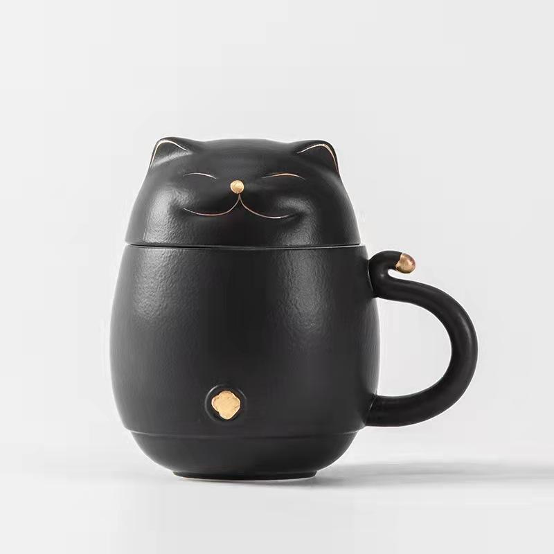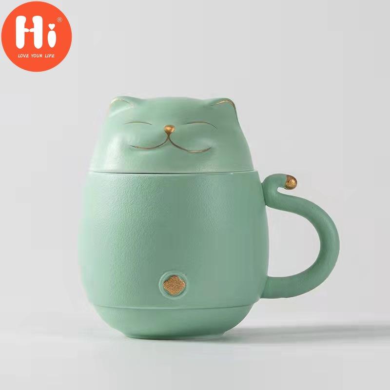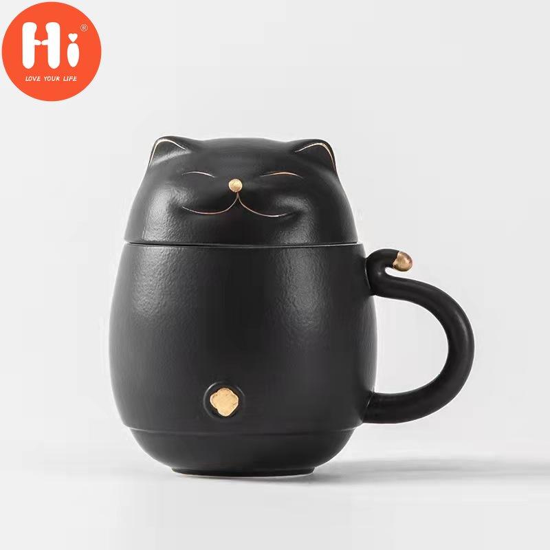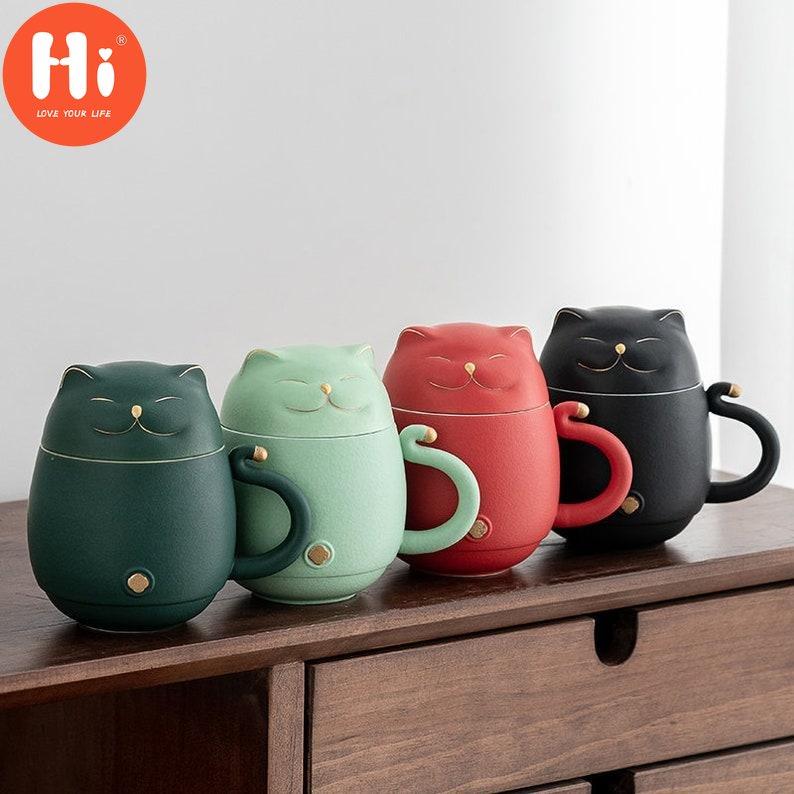 Hi Tang Pincha - Керамическая чайная чашка Lucky Cat с заварочным устройством, кофейная чашка, чашка для чая с молоком, набор для питья, чашка для воды, уникальный дизайн, подарочная чашка для воды для домашнего офиса