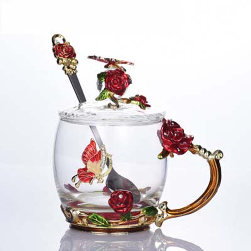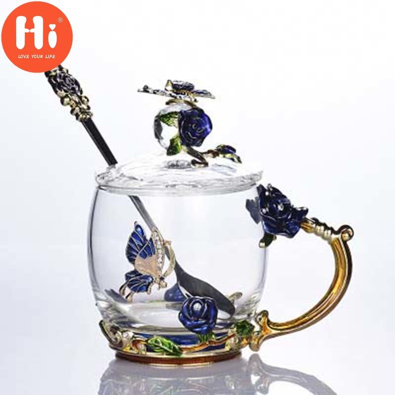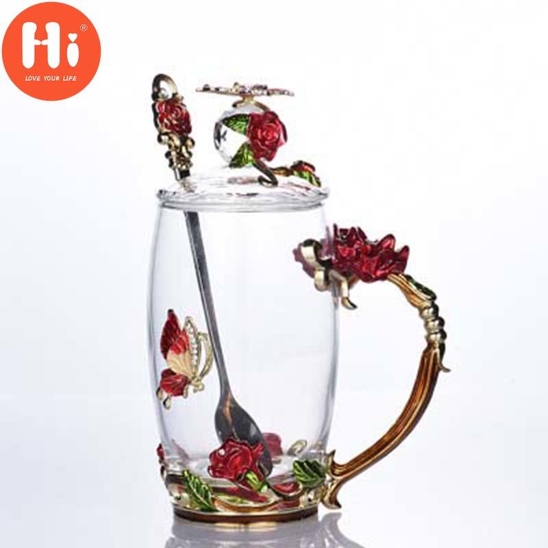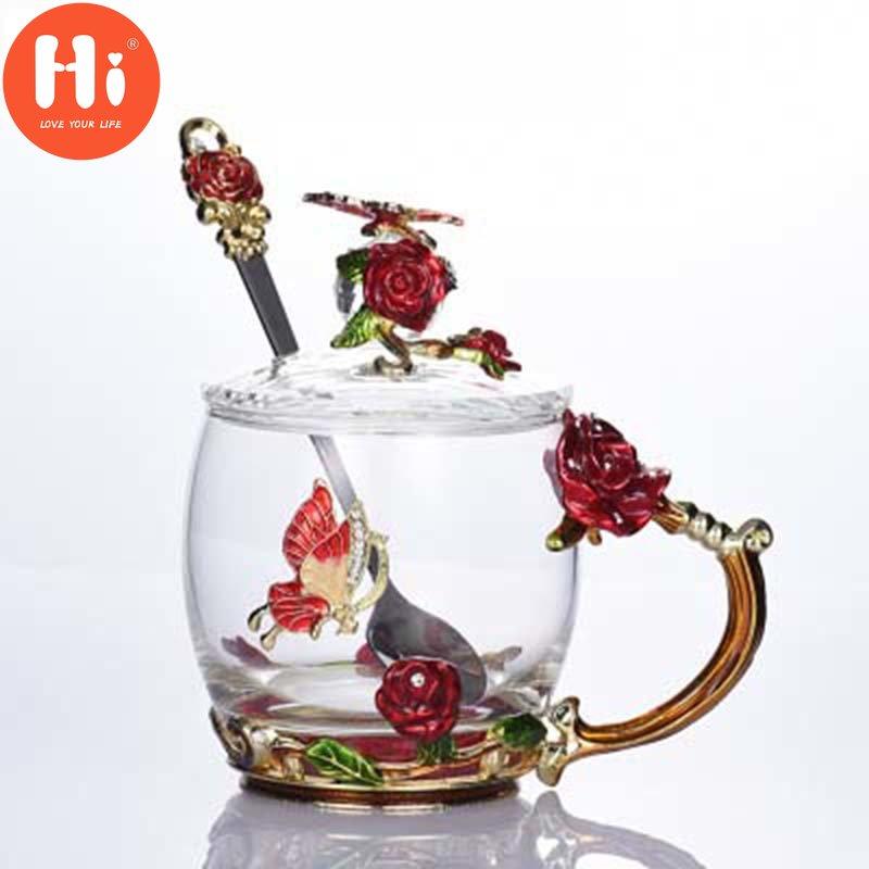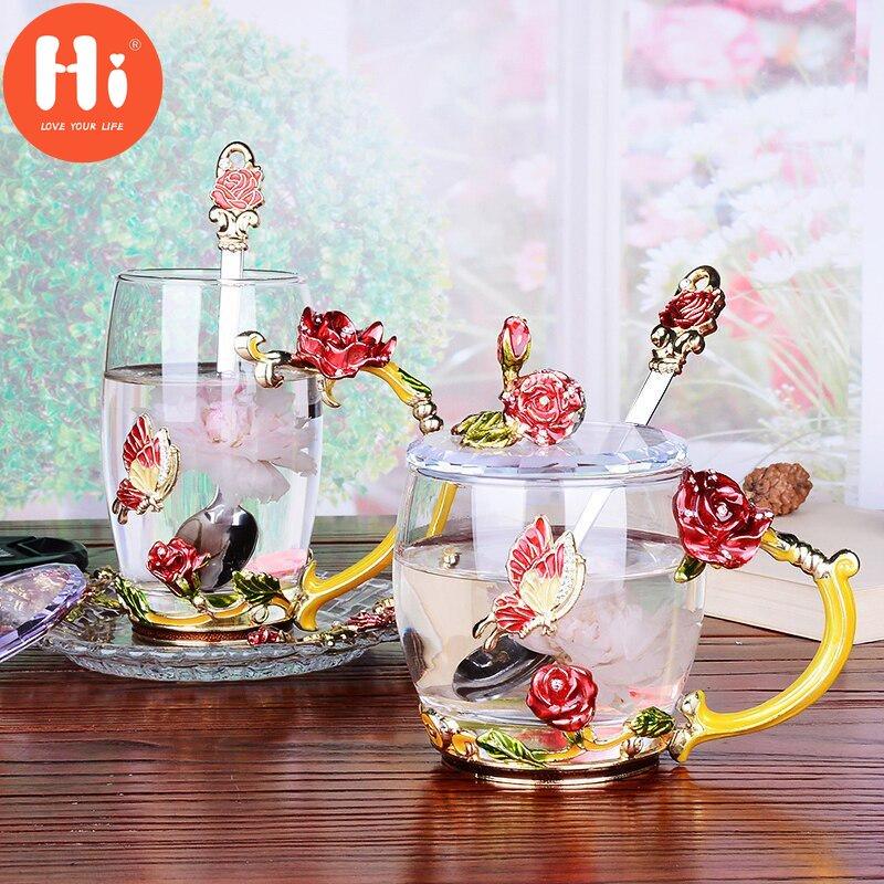 Привет термостойкая стеклянная чашка розовая эмаль кофейная чашка кружка цветок чай стеклянная чашка из сплава с ручкой