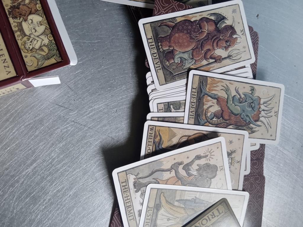 8 дьяволов, 3 башни, 2 звезды, 2 суда. Впервые такую колоду вижу. Но прикольная. Остаётся только подумать, что означают. Нравится.