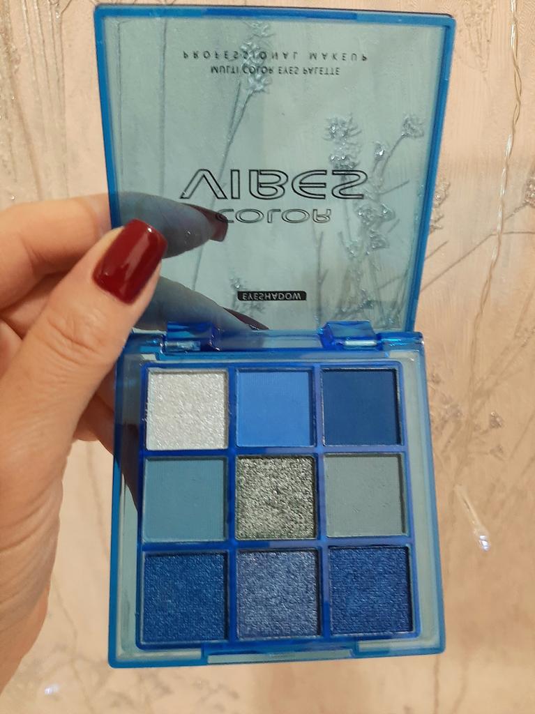 Палитра теней! 💖 🔹️Палитра теней для век– прекрасна! Тени в синей гамме шиммерные и матовые. 🔹️Тени оформлены в пластиковый компактный, сине-прозрачный футляр и лежат в прекрасной, голубой коробочке. Открывается палетка легко без лишних усилий, закрывается плотно до щелчка. Палетка состоит из 9 оттенков. По текстуре тени достаточно хорошо спрессованны .Наносить их лучше плотно набитой плоской кистью. Удаляется мицеллярной водой. При нанесении не пылят, ложатся и тушуются хорошо. 🔹️С этой палеткой можно легко создать яркий макияж. 🔹️Рекомендую от души!!! 🔹️Спасибо большое продавцу! ❤
