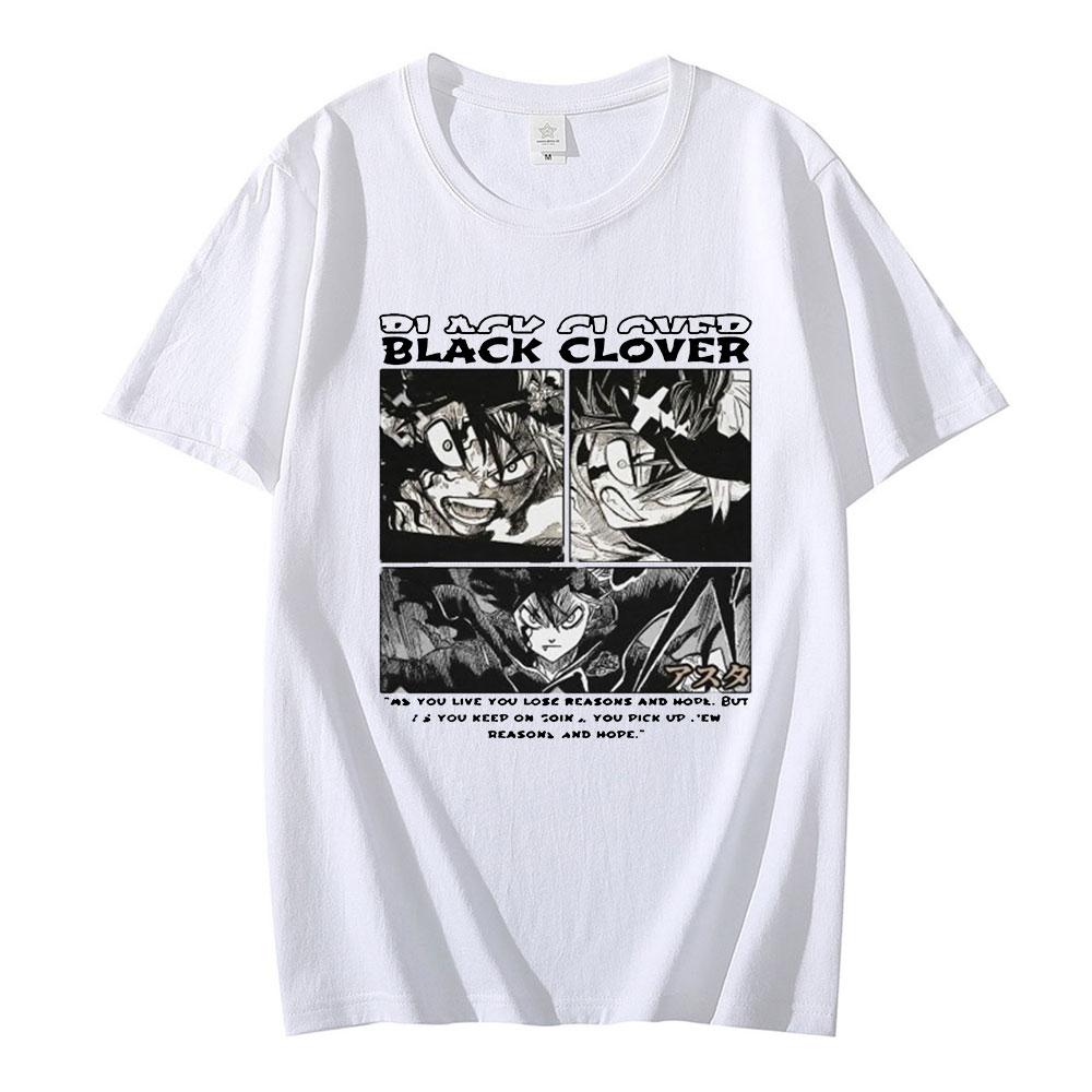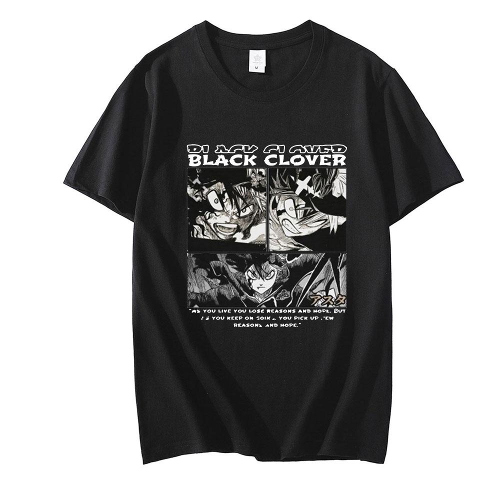Футболка с черным клевером японского аниме, мужская футболка Asta Manga, летние топы с мультяшным рисунком, футболки унисекс, модная футболка унисекс, футболка в стиле Харадзюку, мужская