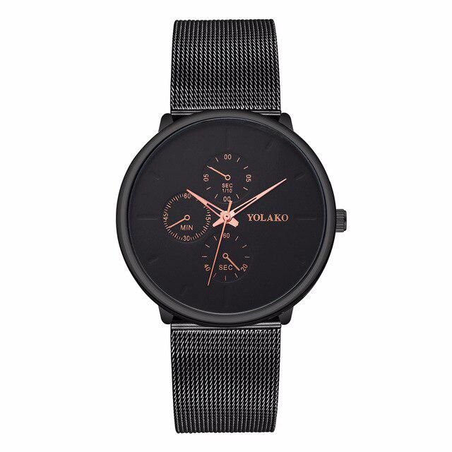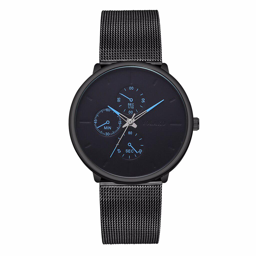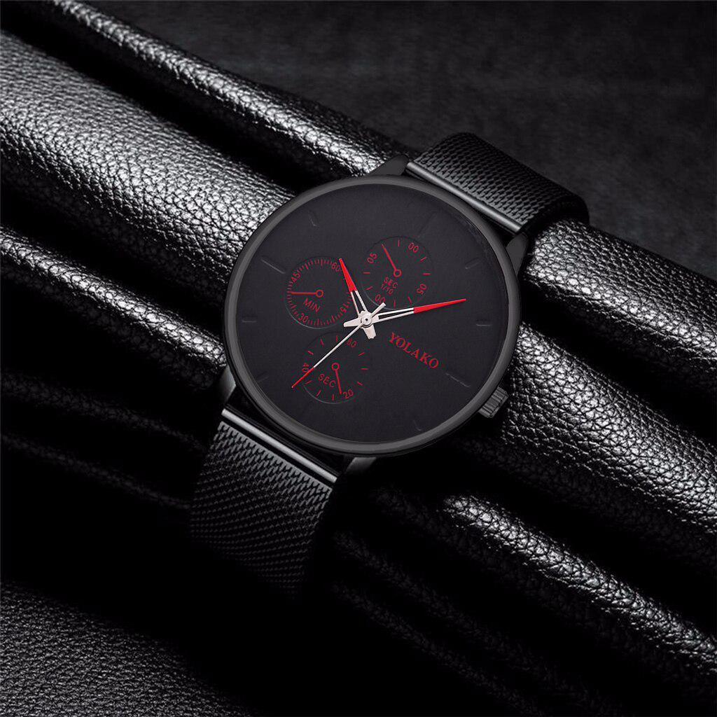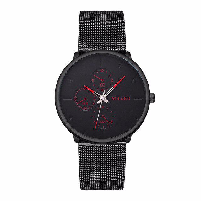 YOLAKO Мужские черные кварцевые деловые часы с сетчатым ремешком из нержавеющей стали, роскошные повседневные спортивные часы, наручные часы, мужские часы