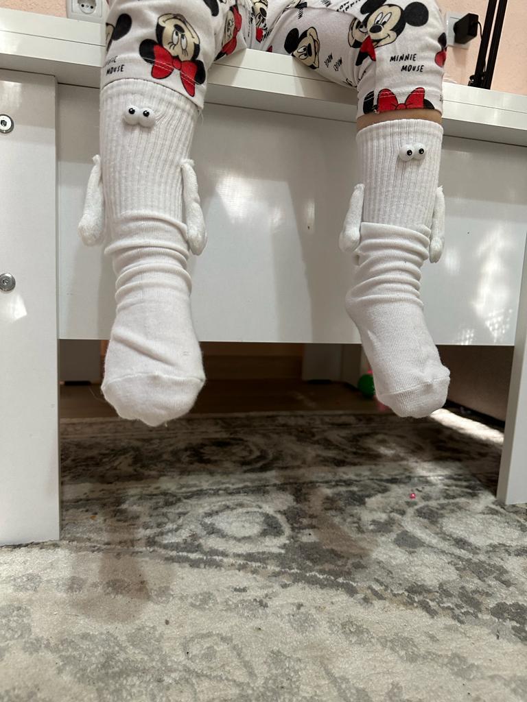 Носочки для внучки Выполнены из синтетики .Тянутся . Глазки пришиты крепко .Ушки или ручки , даже не знаю 😃 из ткани под бархат .Внутри них магнитики с обеих сторон.Все работает 😃 По качеству нормальный товар.Можно порекомендовать