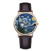 Креативные женские часы с картинами Ван Гога, браслет «Звездная ночь», простой кожаный ремешок с тремя булавками, женские часы, подарок для женщин