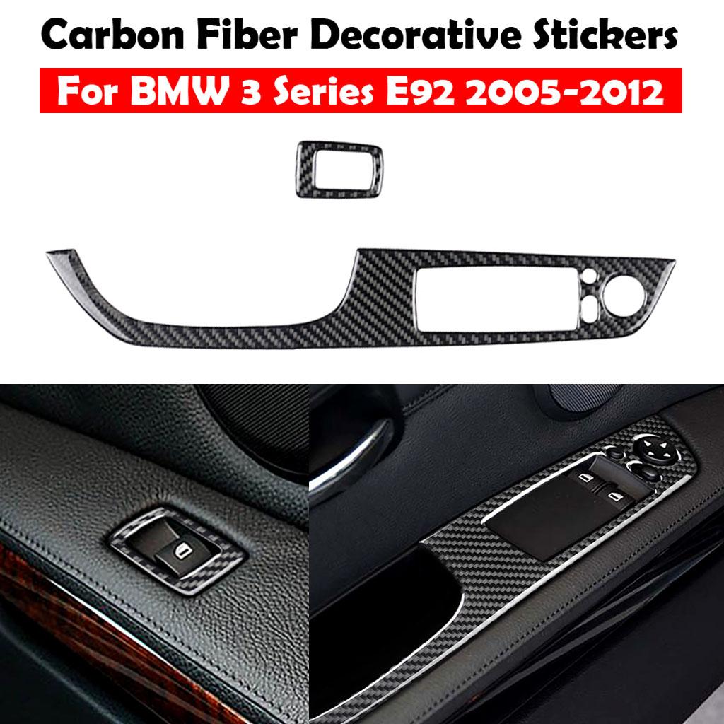 Наклейка из настоящего углеродного волокна для BMW 3 серии E92 05-12 Автомобильная дверная кнопка стеклоподъемника Рамка Крышка Внутренняя отделка