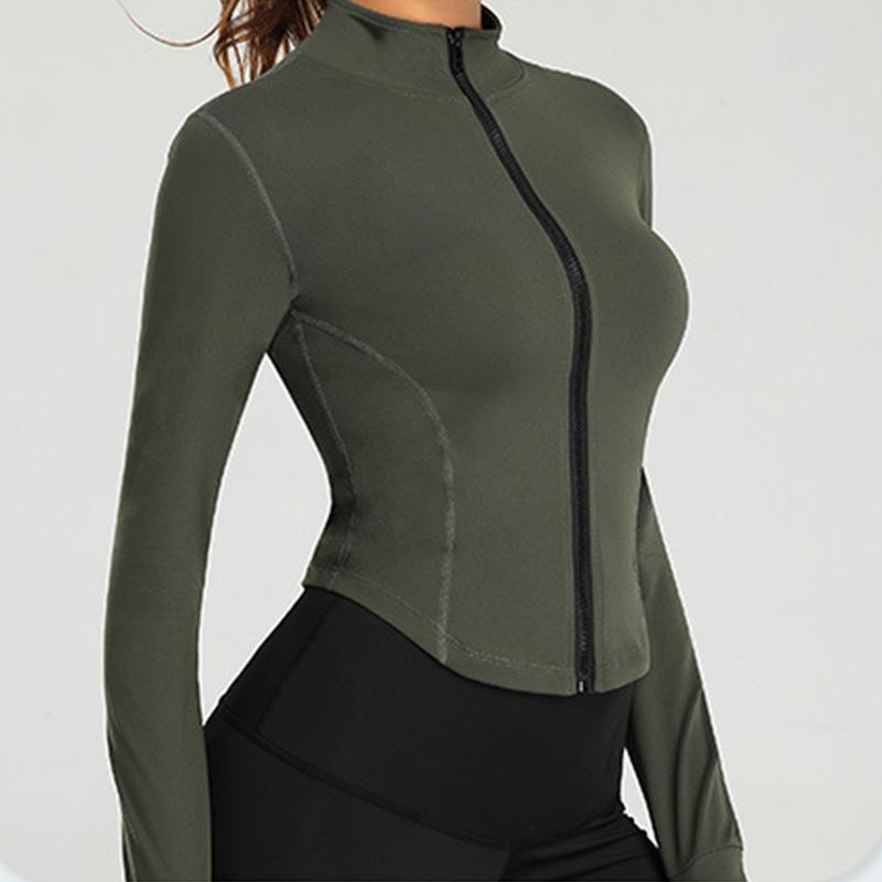 Женский топ на молнии для йоги, куртки для бега для тренировок с отверстиями для больших пальцев, эластичные укороченные топы с длинными рукавами, спортивная одежда