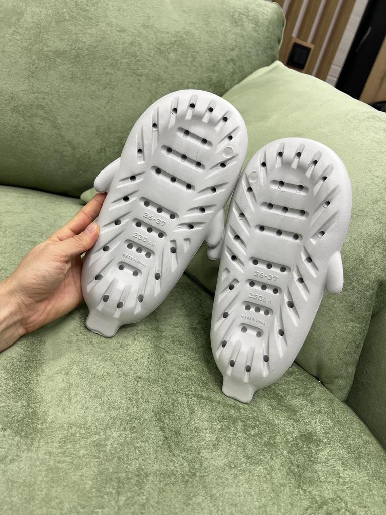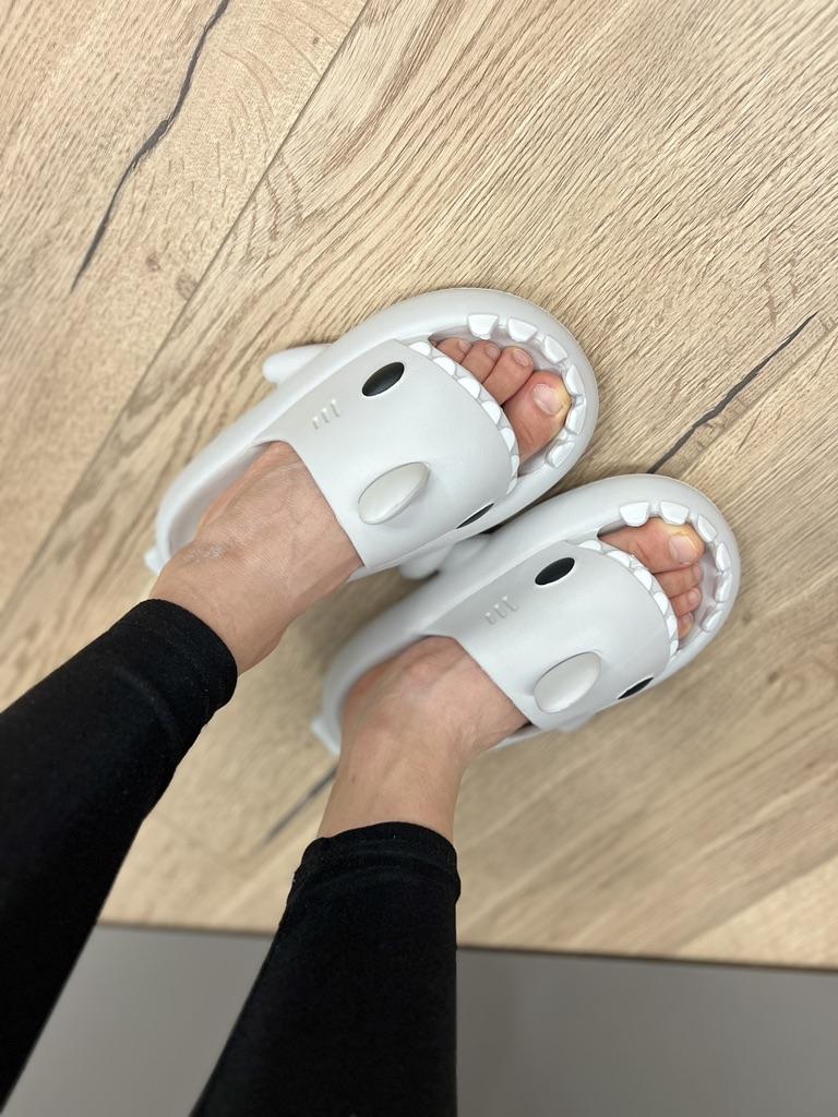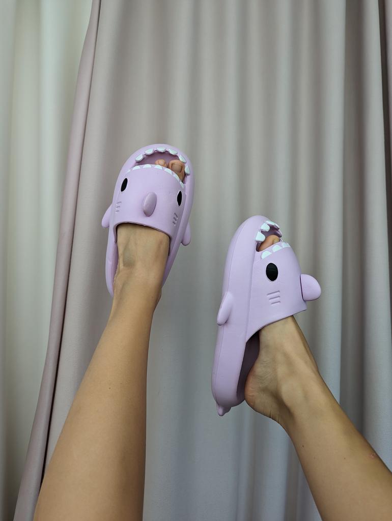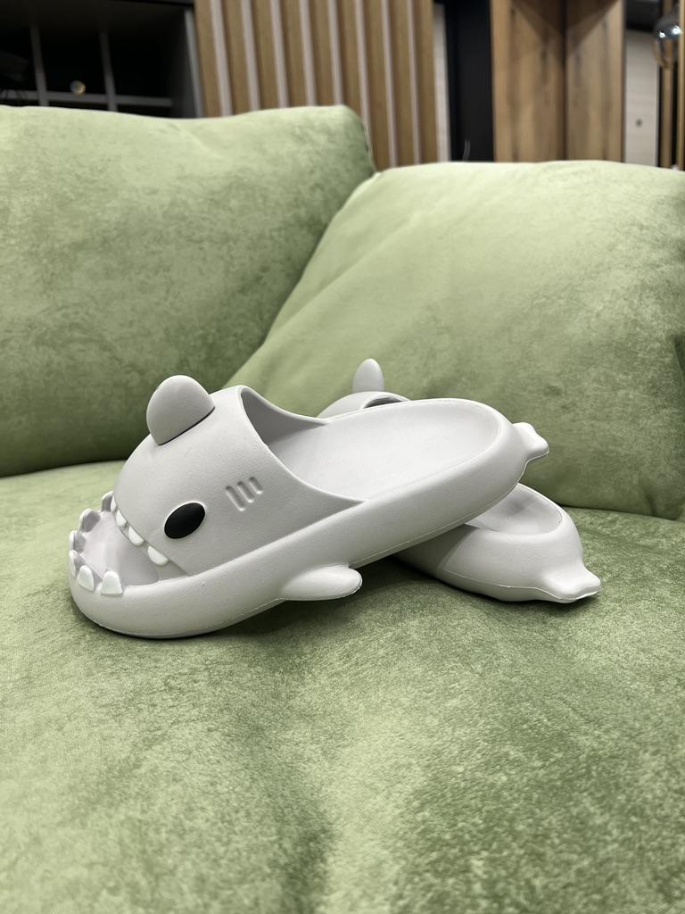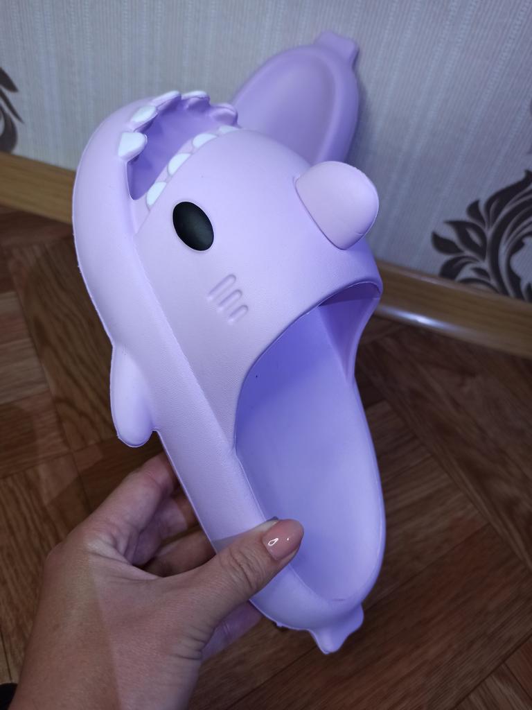 Лёгкие летние тапочки в виде акулы. Тапочки на странице продавца предоставлены в разных цветах и размерный ряд от 36-37 до 44-45 . На длину стопы 23 см. взяла размер 36-37 по длине есть маленький запас около 0,5 см по ширине свободны подойдут и на широкую ножку. При ходьбе тапочки не спадают. Изготовлены качественно, интересный дизайн, подойдут как взрослым так и детям, как женщинам так и мужчинам . Посторонний запах отсутствует. Тапочки мягкие, комфортные, лёгкие. Тапочки понравились к покупке однозначно рекомендую.