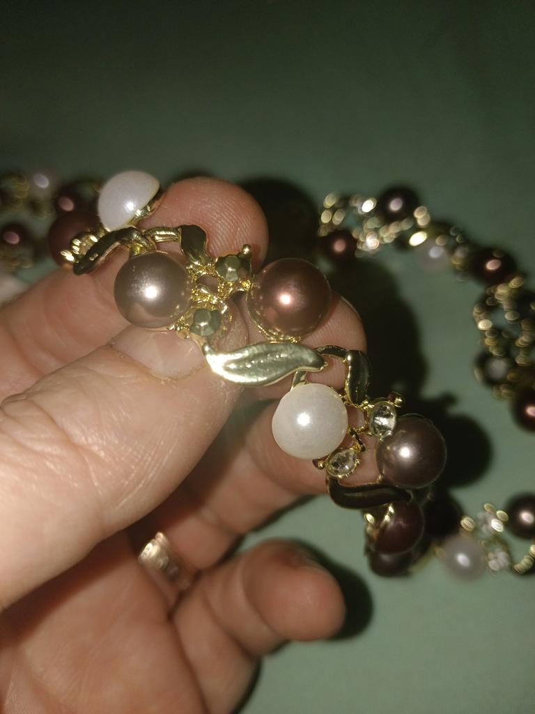 Довольно приятный комплект из искусственного трехцветного жемчуга. Серьги 2 цвета жемчуга. Спасибо!