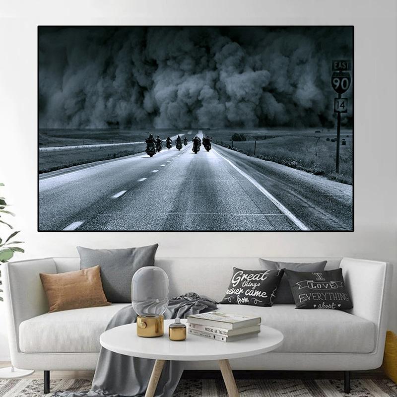 Пейзаж, мотоцикл, туман, нагрузка, плакаты и принты, холст, живопись, черно-белые настенные художественные фотографии, домашний декор, без рамки