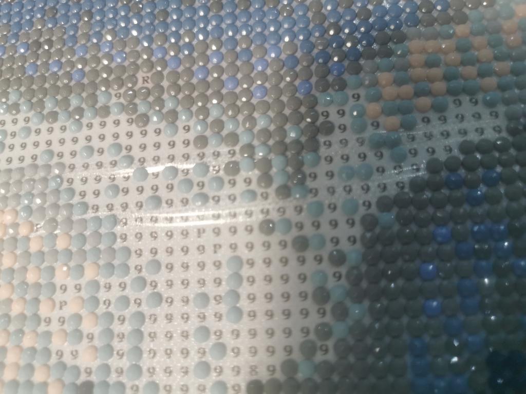 На фото - холст со схемой. Картина обещает быть красивой, но уже предвижу проблемы из-за пузырей на клеевом слое. Если получится, после выкладки дополню отзыв готовой работой.