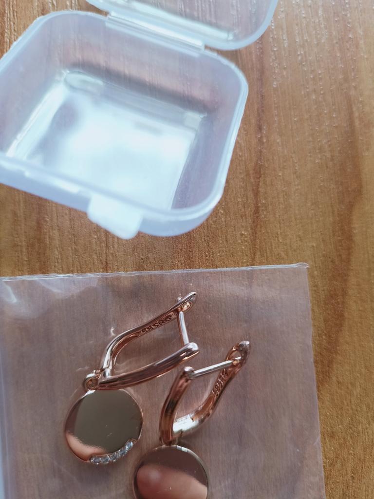 Серьги такие, как заявлено, проба 585 RG стоит на обеих серёжках. Похоже на золото, сколов нет. Замочки тугие, качественные. Камушки все на месте. Шли примерно месяц, заказ отслеживался (при платной доставке) и через приложение, и потом через "Почту России".