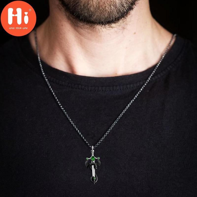 Ретро Драконий Меч Кулон Ожерелье Мужская Мода Изысканное Ожерелье Викинг Аниме Ювелирные Аксессуары Подарок на Хэллоуин Уникальный Дизайн Тенденция Мужской Кулон