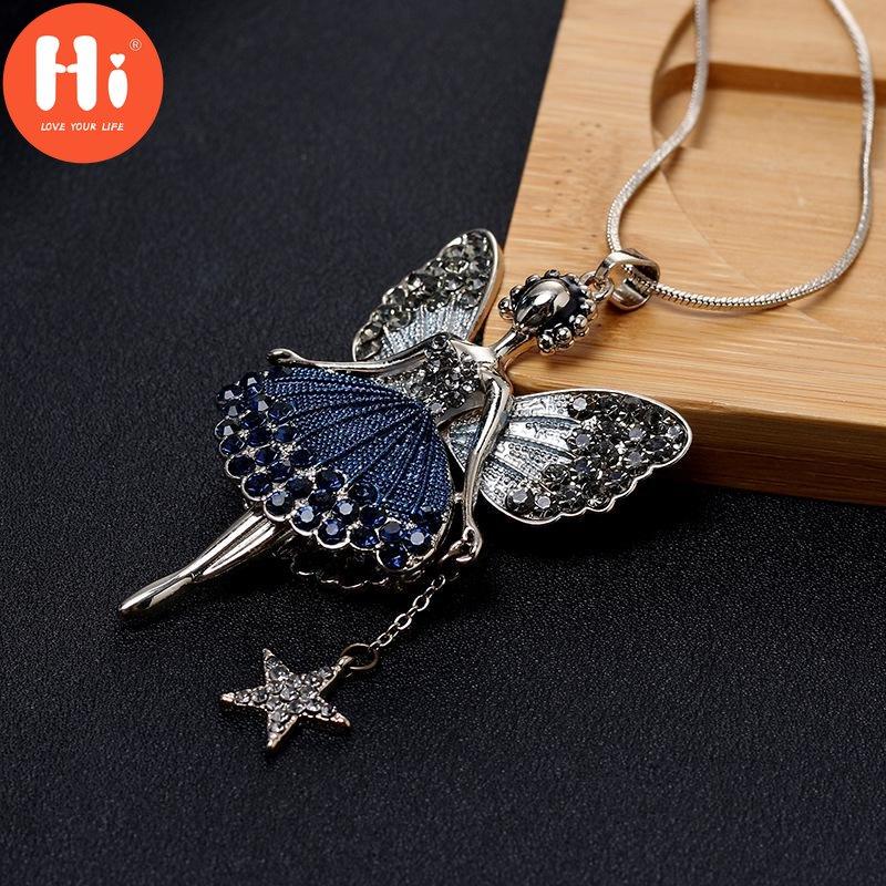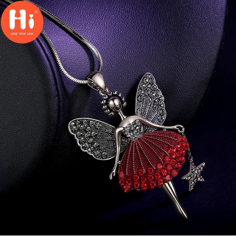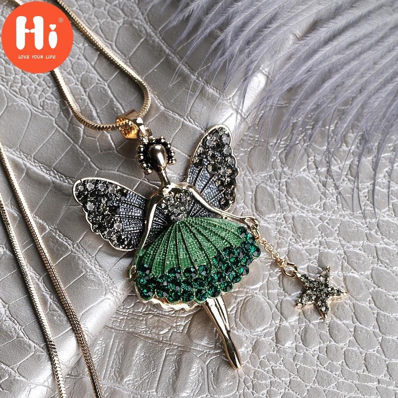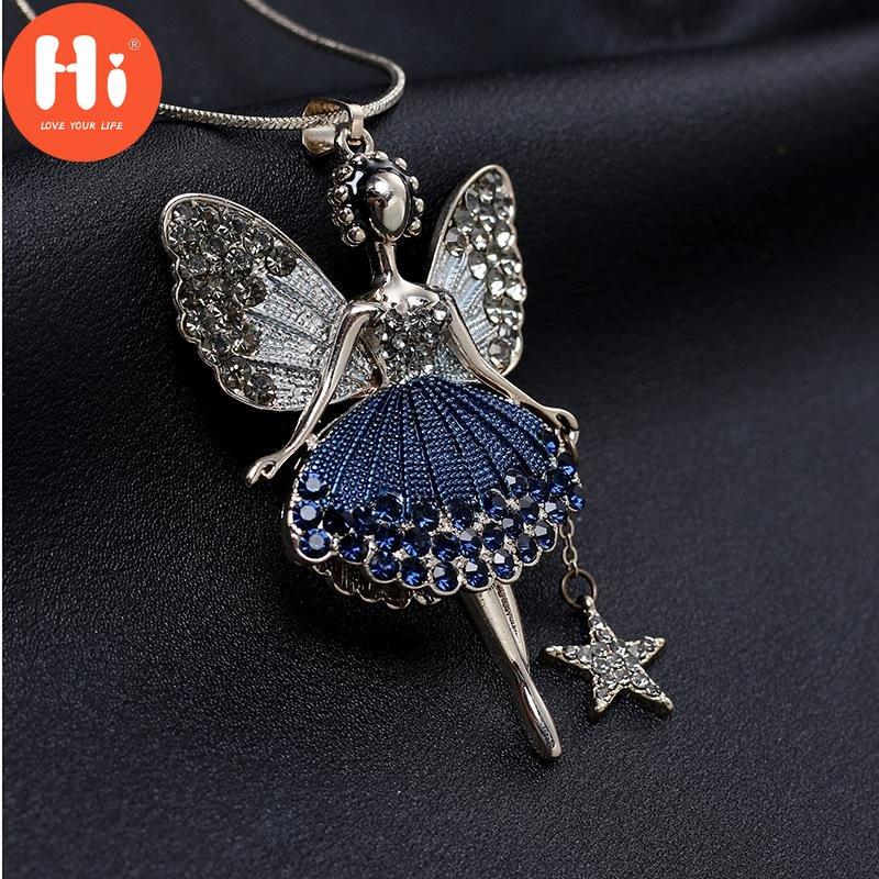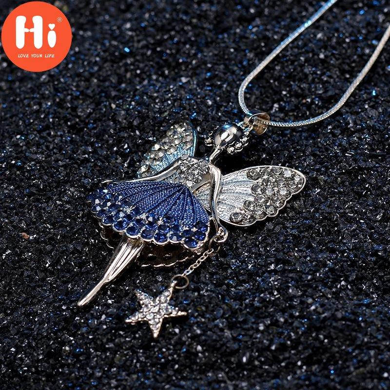 Привет мода мультфильм девушка крыло стиль кулон блестящее ожерелье
