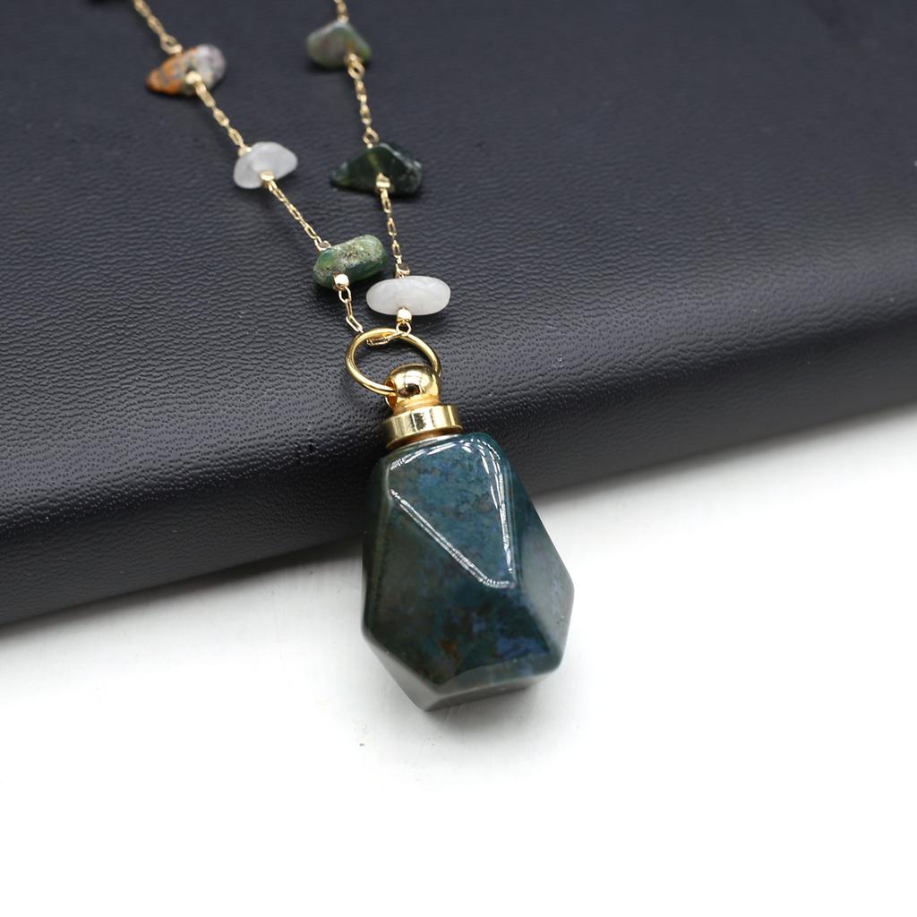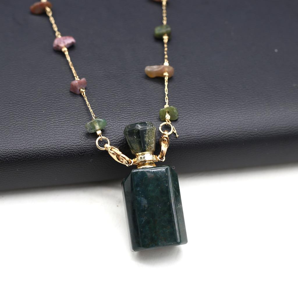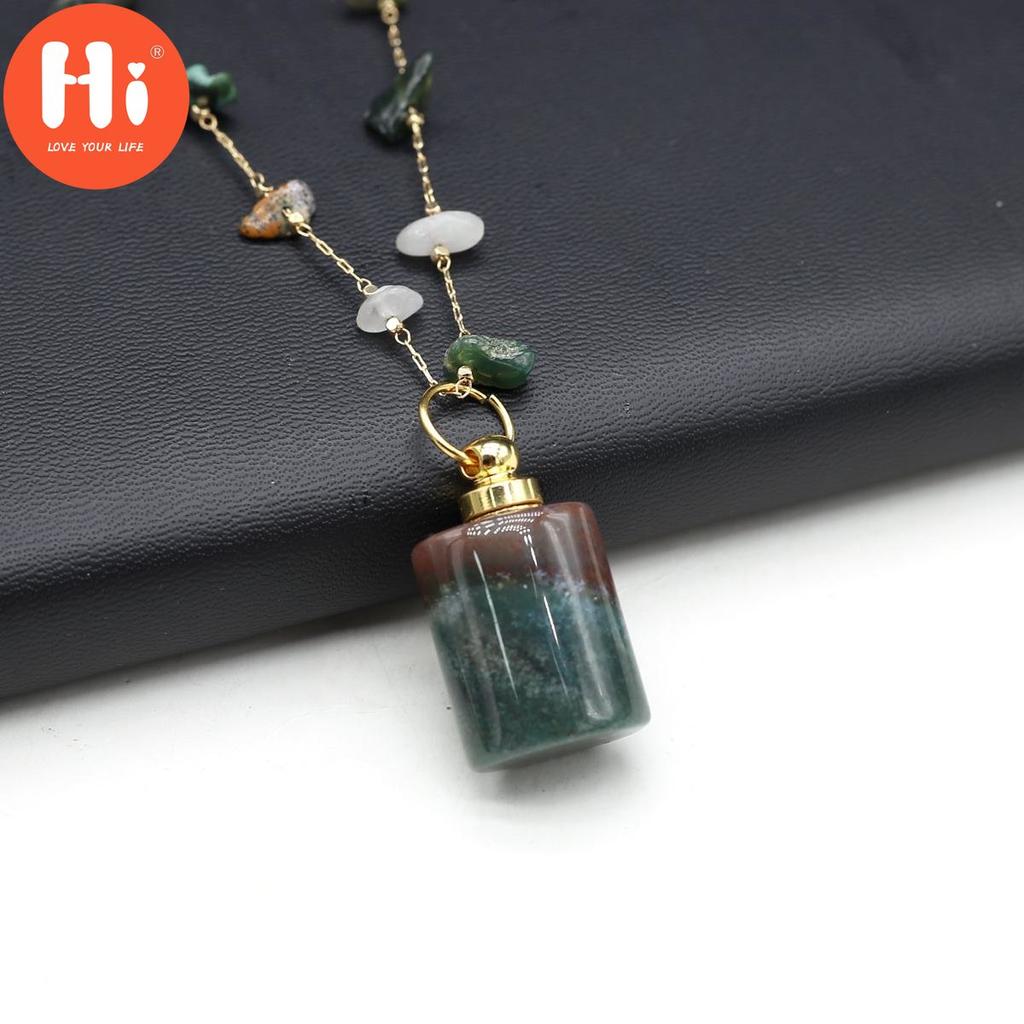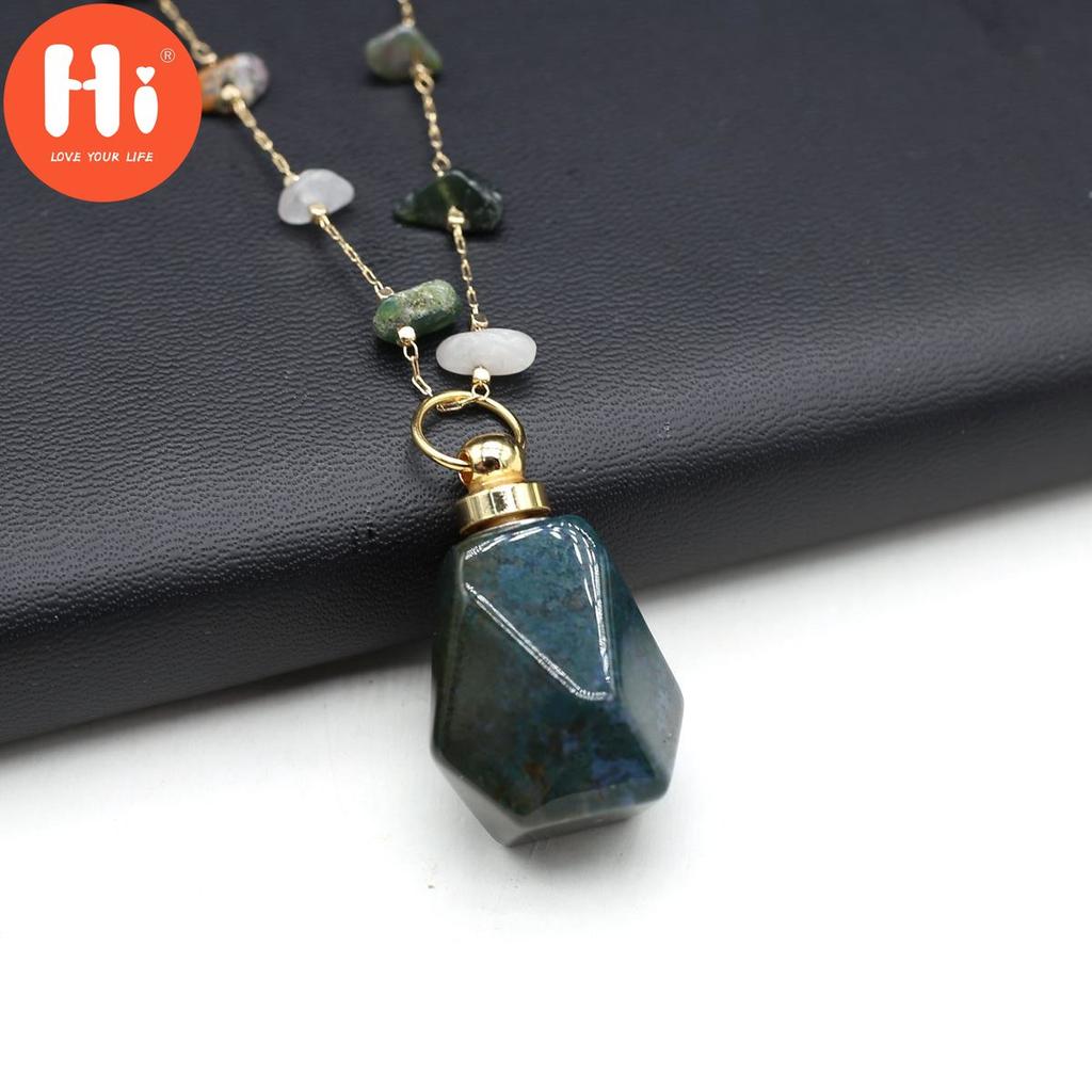 Привет винтажное ожерелье с подвеской в виде флакона духов из натурального камня, зеленое чернильно-синее кварцевое гравийное ожерелье для женщин, ювелирные изделия своими руками, подарки