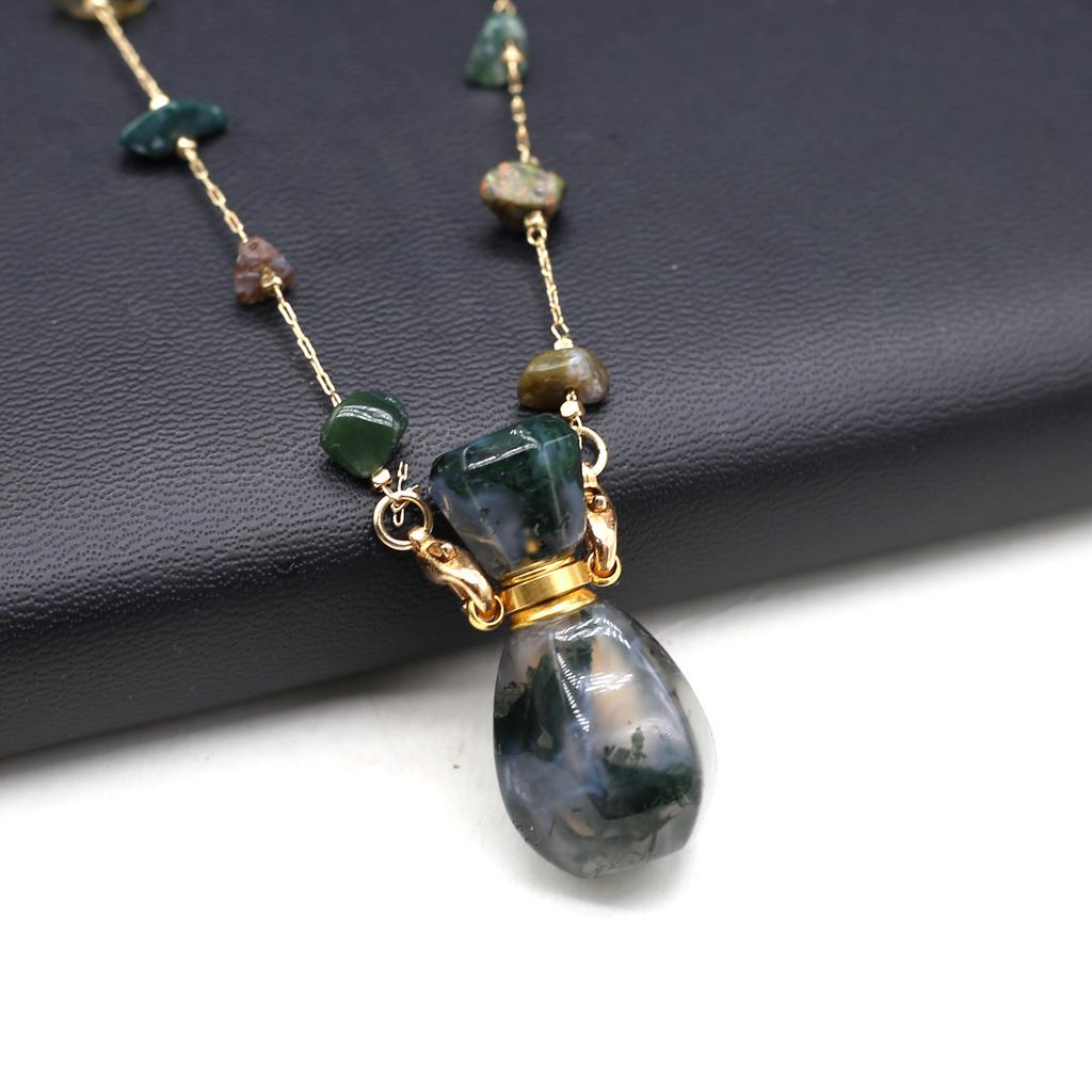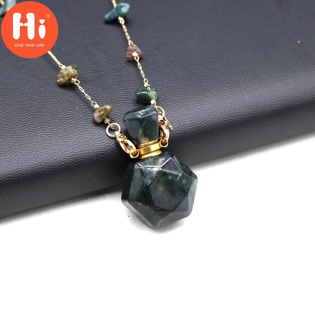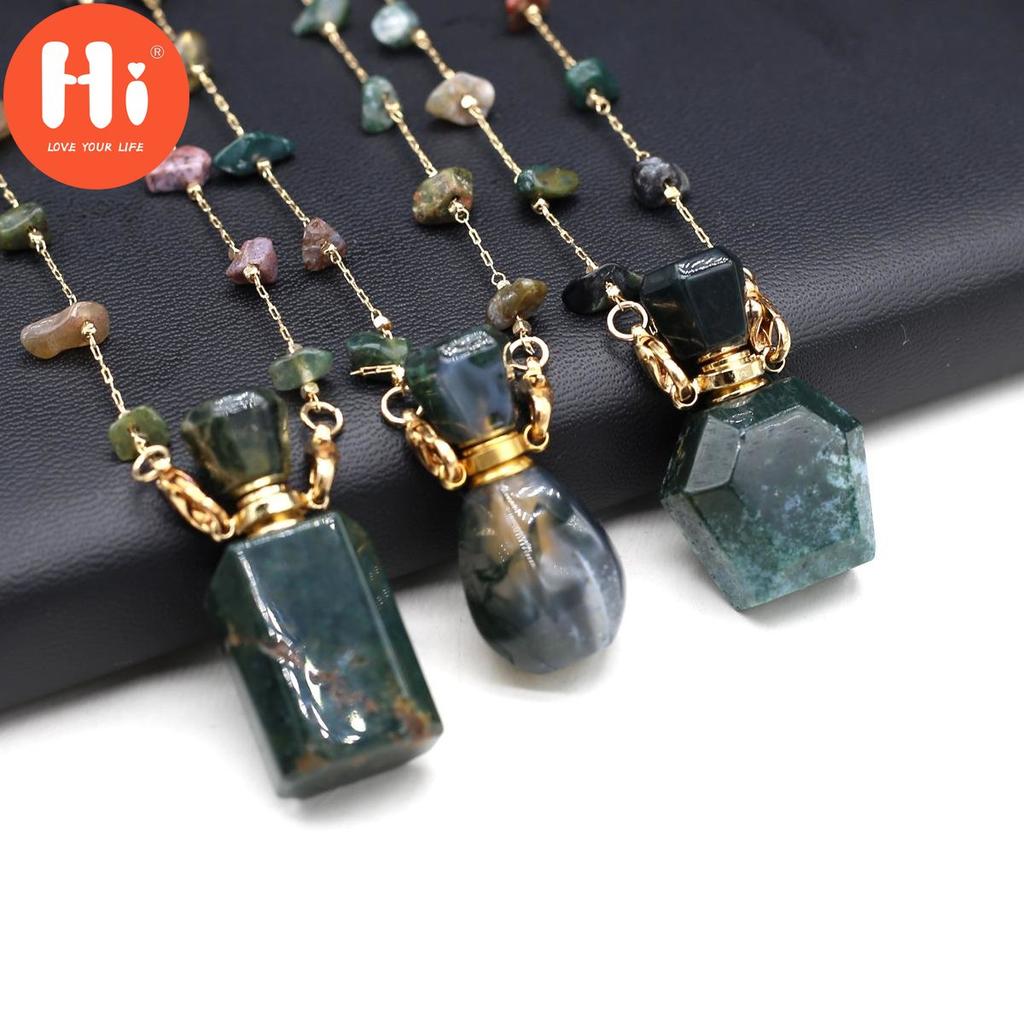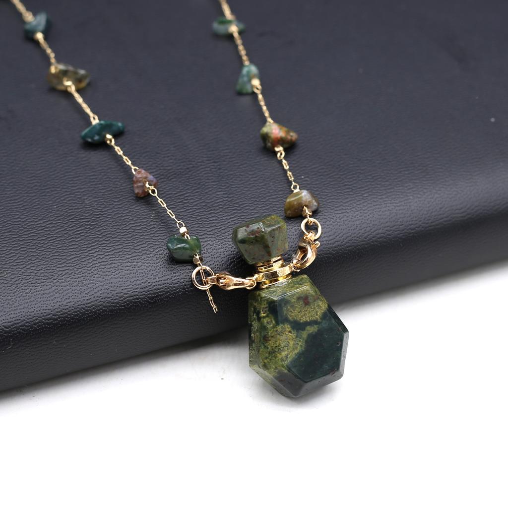 Привет винтажное ожерелье с подвеской в виде флакона духов из натурального камня, зеленое чернильно-синее кварцевое гравийное ожерелье для женщин, ювелирные изделия своими руками, подарки