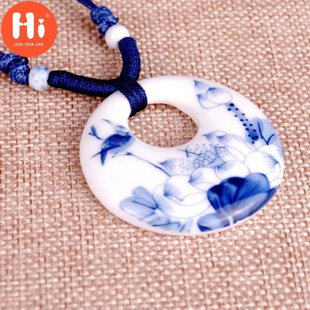 Привет керамические ожерелья подвески новые модные винтажные синие и белые ювелирные изделия ручной работы подарки