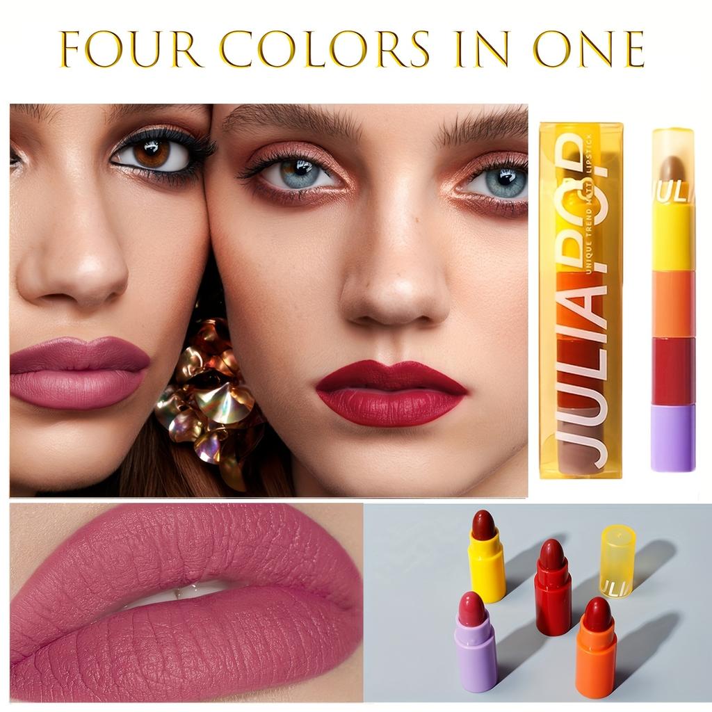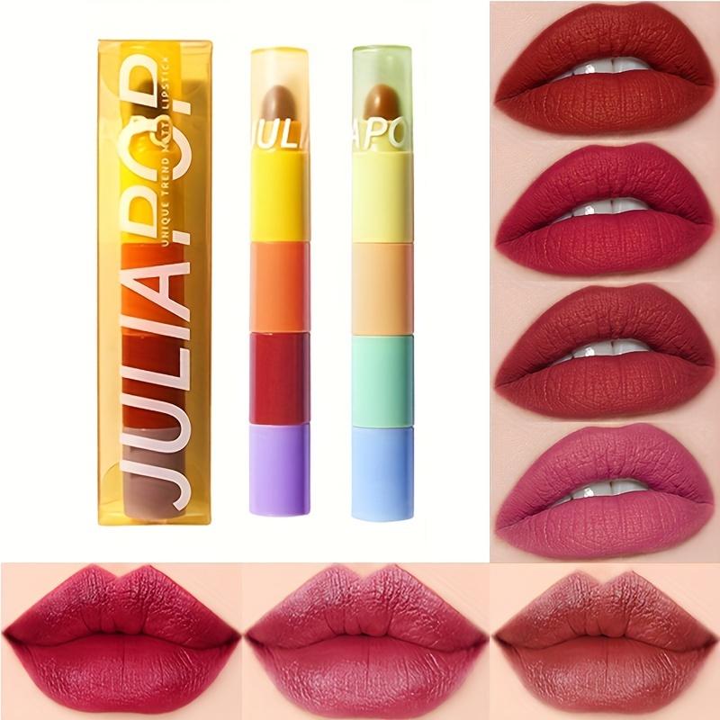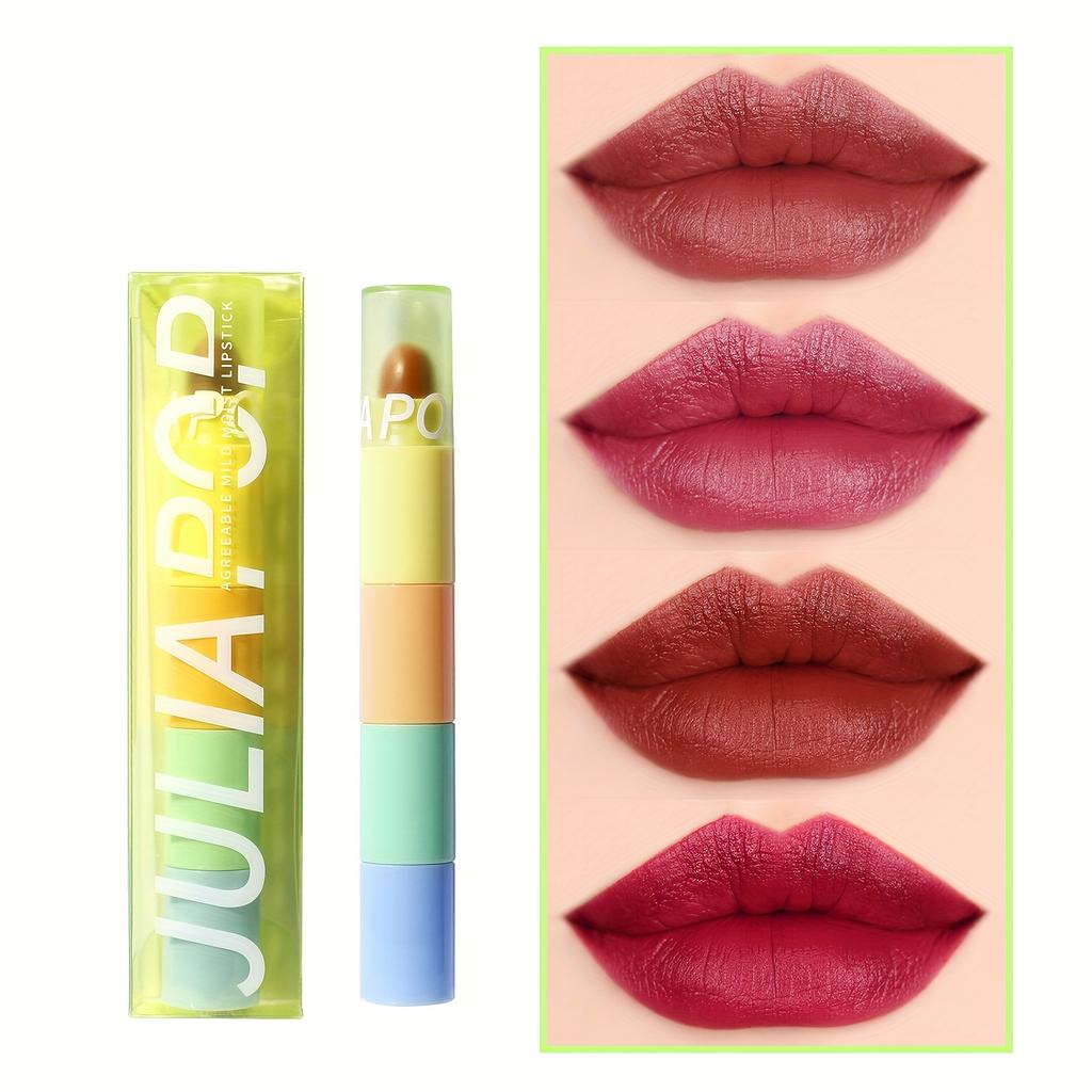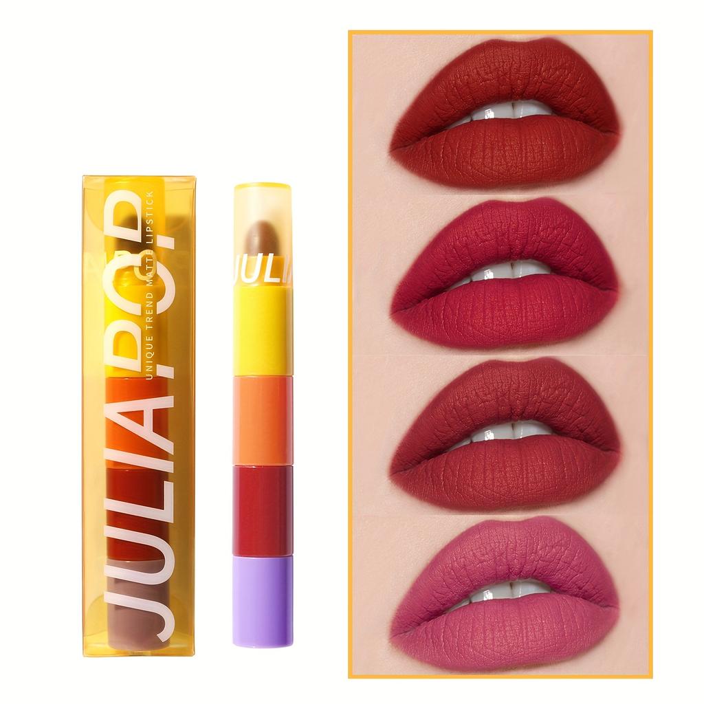 Портативный мини-набор помады 4-в-1, водостойкая, долговечная, не размазанная, не оставляющая следов, мини-бархатная помада, набор помад