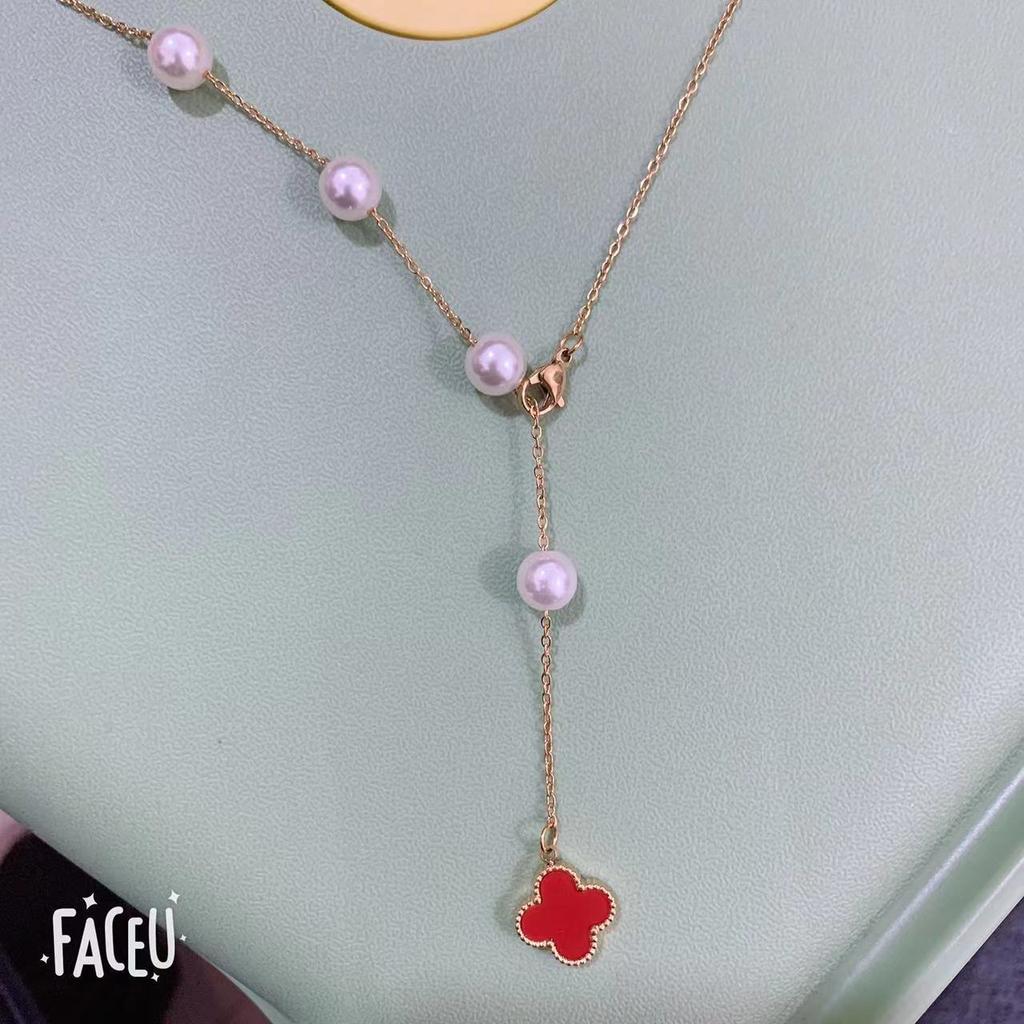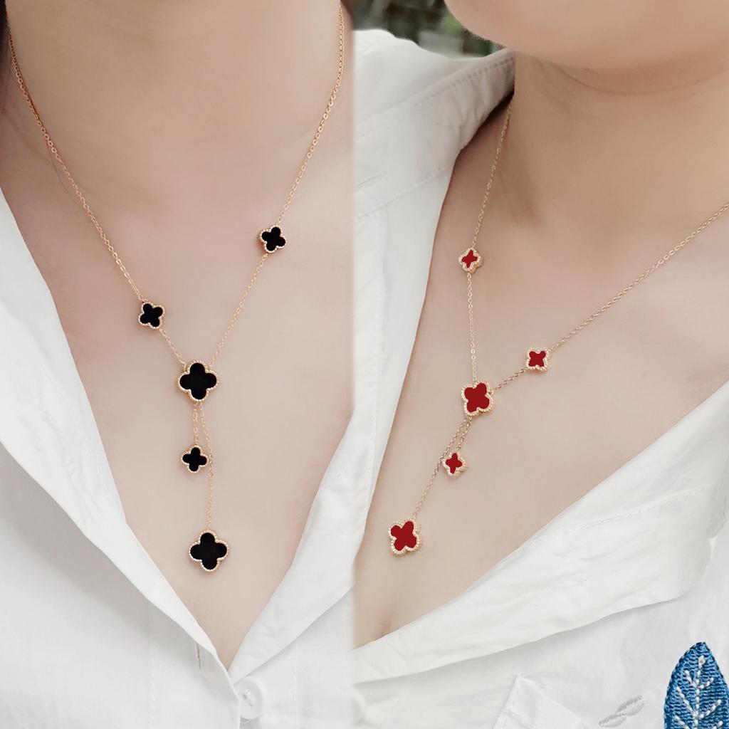 Ожерелье с четырьмя лепестками клевера, женская цепочка с воротником, светильник, роскошный кулон с кисточкой, Премиум-размер, двусторонние персонализированные ювелирные изделия, универсальные