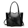 Женский комплект из 2 предметов, повседневная сумка-тоут, высококачественная масляная восковая мягкая кожа, элегантная офисная сумка и кошельки, черная роскошная сумка в стиле ретро, новинка 2022 года