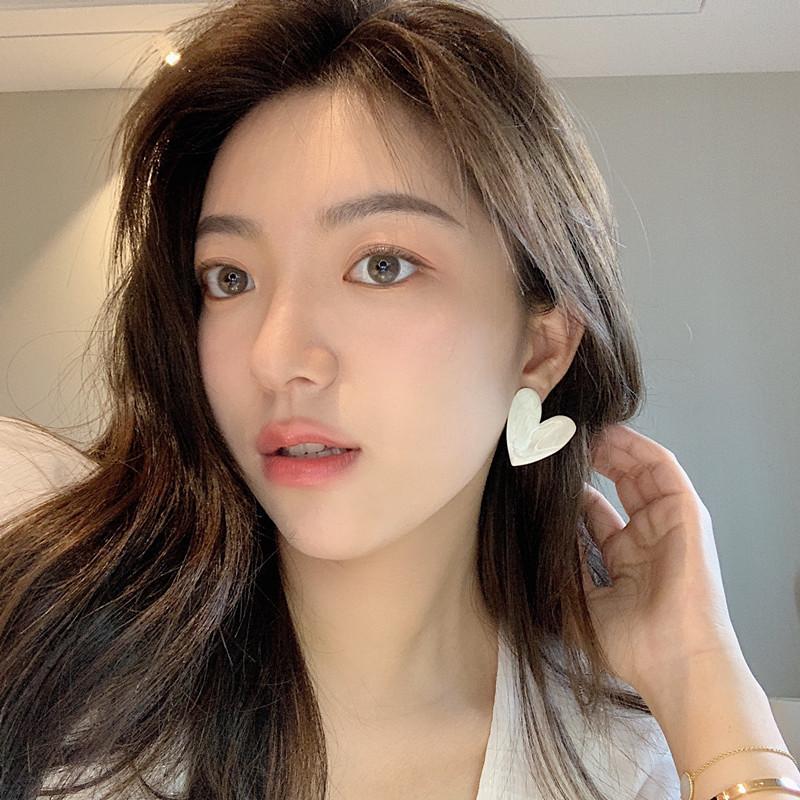 Серьги-гвоздики белого цвета с большим сердцем для женщин и девочек, корейские серьги с каплевидной глазурью, эстетические минималистичные ювелирные изделия для повседневной жизни, пирсинг