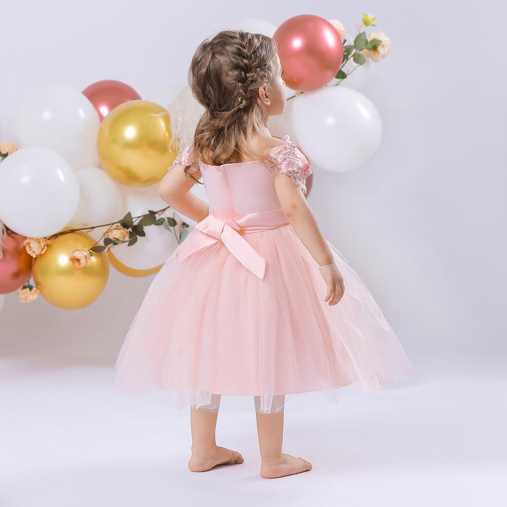 Детское платье с большим бантом и кружевными цветами сделает вашего малыша очаровательным. Дизайн пачки на оголовье усиливает темперамент принцессы. Качественный и красивый внешний вид платья девочки оправдает ваши ожидания.