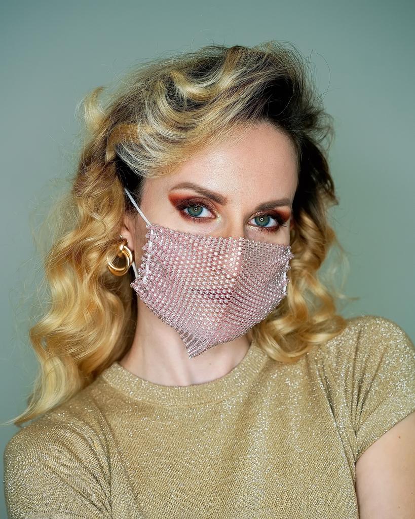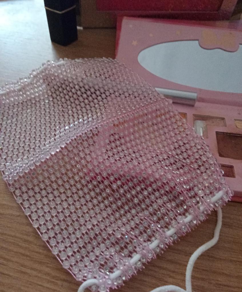 Блестящая маска для лица Сделана по типа медицинской, и в целом можно её носить поверх обычной медицинской, чтобы выглядеть симпатичнее, но по мне это больше какая-то фешн-история, для съемок, может для выходов куда-то, для косплея и маскарада и всякого с ними (например костюм медсестры в маске). Доступны все расцветки, у меня розовая. Маска универсального размера, хорошо тянется. Все стразы на месте, и они не могут отвалиться, т.к. закреплены на сетке не с помощью клея, а как бусины, т.е. стразы нанизаны на эту сетку. Поэтому на лице маска сидит удобно, кожу не царапает. Заушники сделаны из мягкой эластичной резинки. Прикольная очень масочка, рекомундую.
