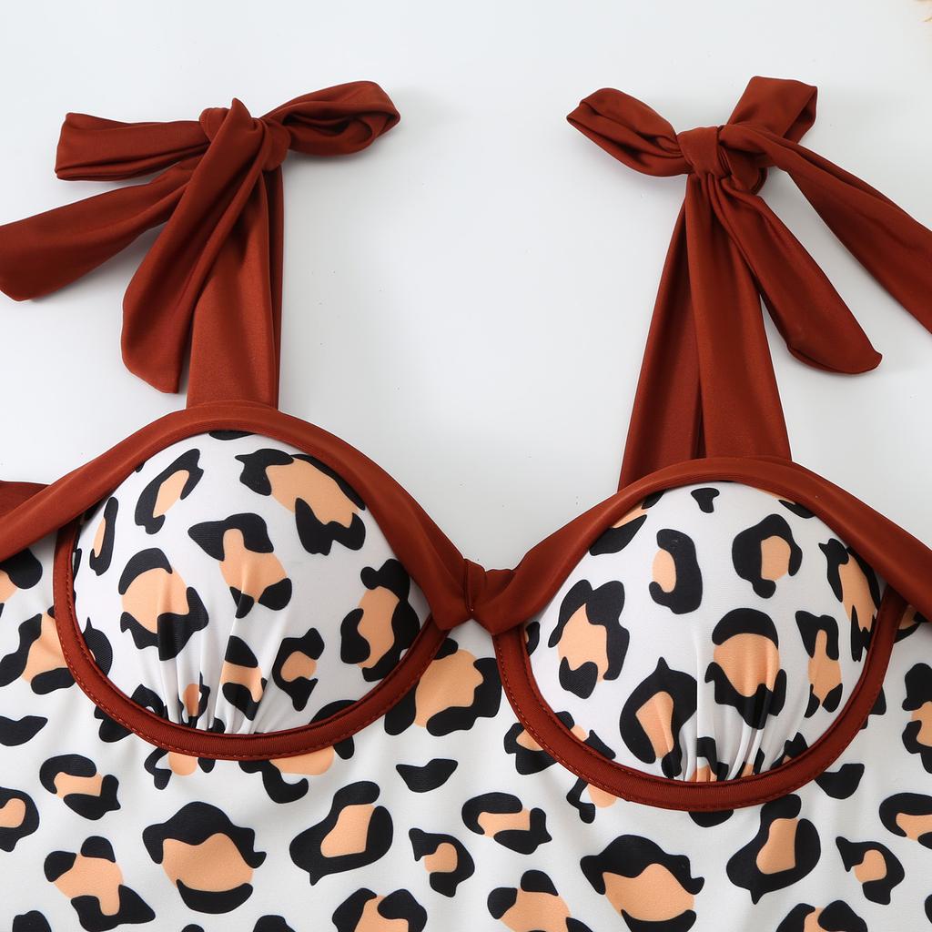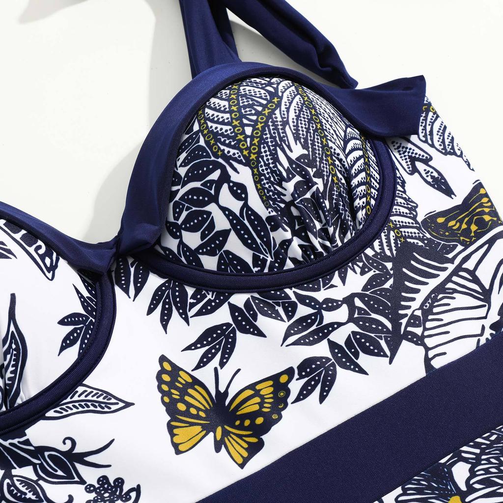 Летние женские комплекты купальников с цветочным принтом из двух предметов, сексуальный v-образный вырез, галстук-бабочка, бретельки с юбкой, купальник