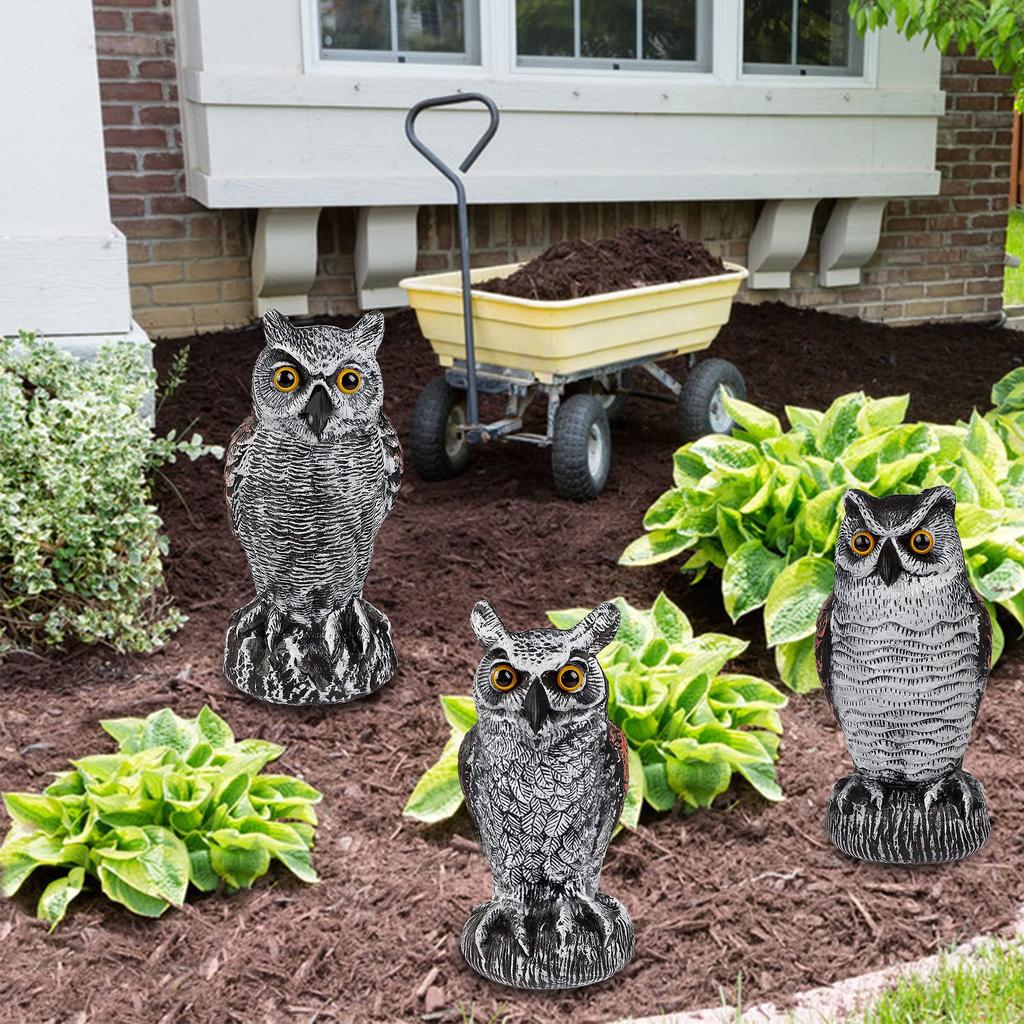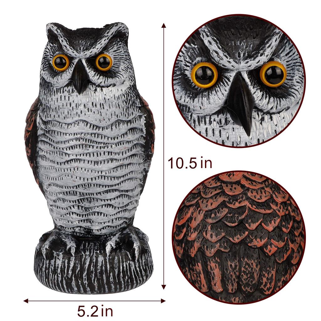 🦉Отпугивающие птиц садовые протекторы: Установленная статуя рогатой совы может отпугнуть животных, таких как птицы, вредители, белки, еноты и многое другое.. Держите всех вредителей и птиц подальше от легких усилий. Меры: каждый приблизительно 10,5 дюйма в высоту x 5,2 дюйма в ширину. 🦉Отличный дизайн: Нижняя закладка для заполнения песком для утяжеления для большей устойчивости.