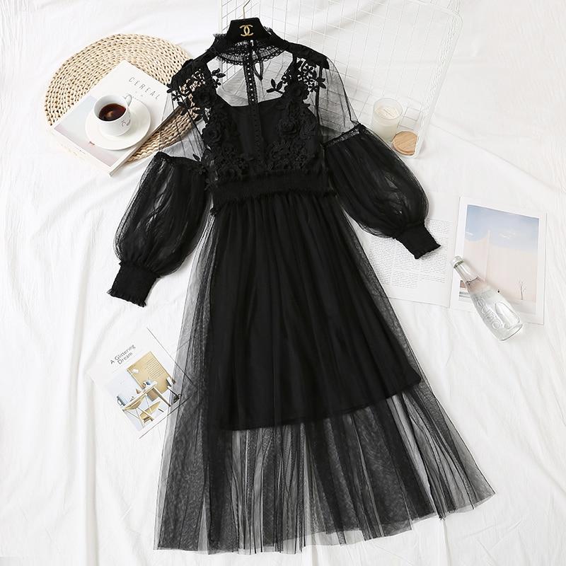 Женское кружевное платье с цветочным узором, женское винтажное элегантное платье с рукавами-фонариками, 2024, длинное платье, женские платья принцессы на крючках, комплект из 2 предметов 12041