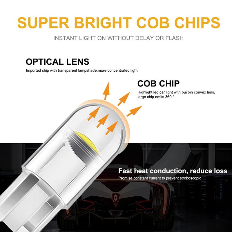 2X W5W 194 T10 Стеклянный корпус Cob Автомобильная светодиодная лампа Белый Синий Красный Клин Лампа номерного знака Купольный светильник