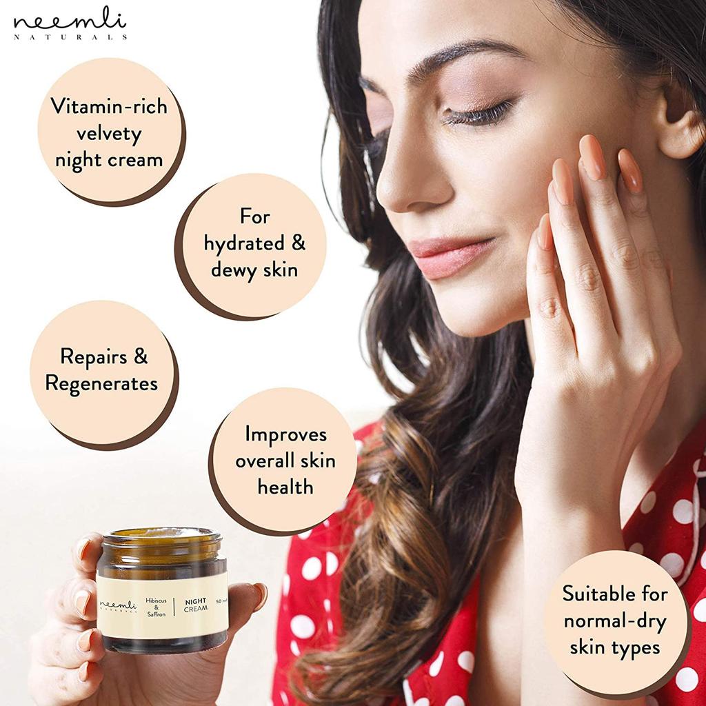 Neemli Naturals Ночной крем с гибискусом и шафраном, восстанавливает и регенерирует, увлажняет, бархатистый ночной крем, богатый витаминами, уменьшает тонкие линии и морщины для женщин 50 мл/1,6 жидких унций (Пакет из 1)