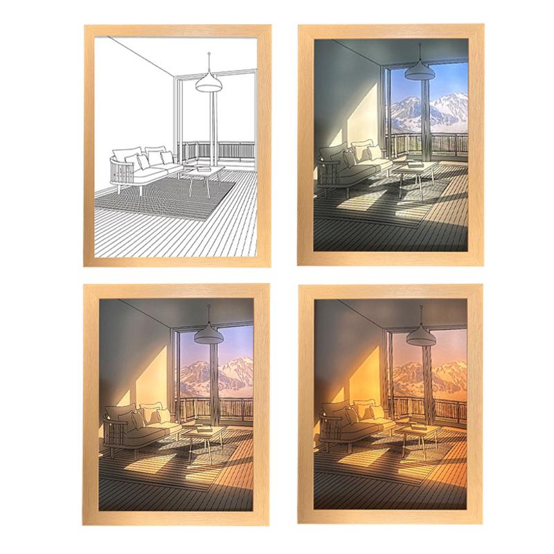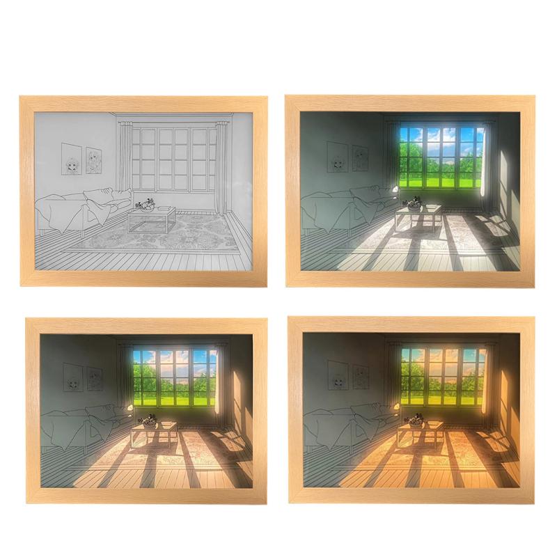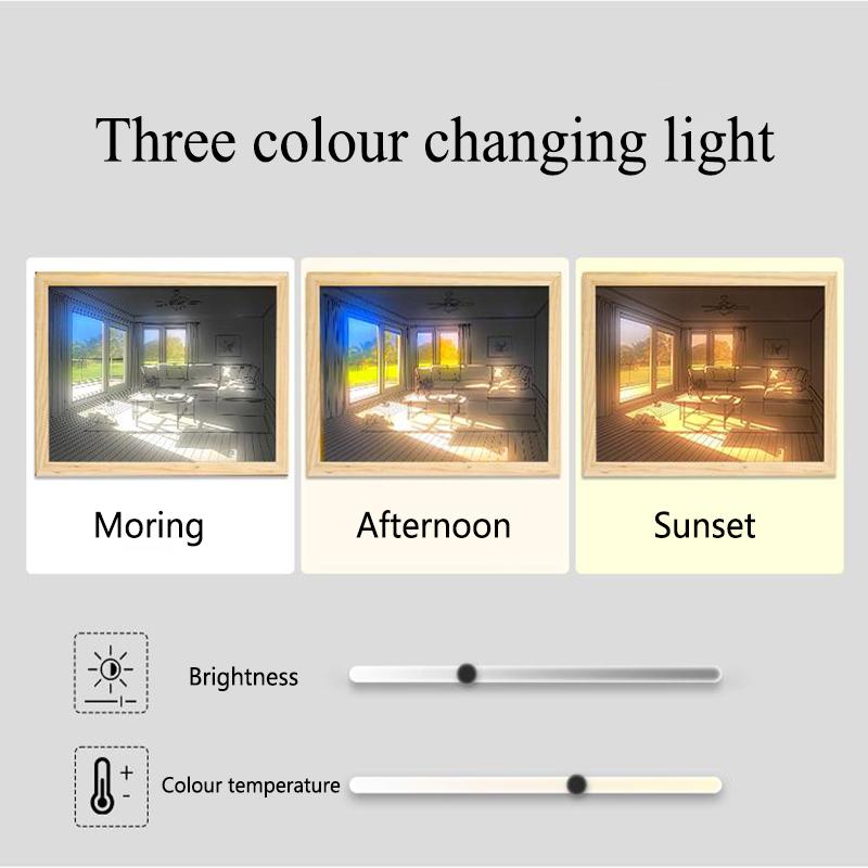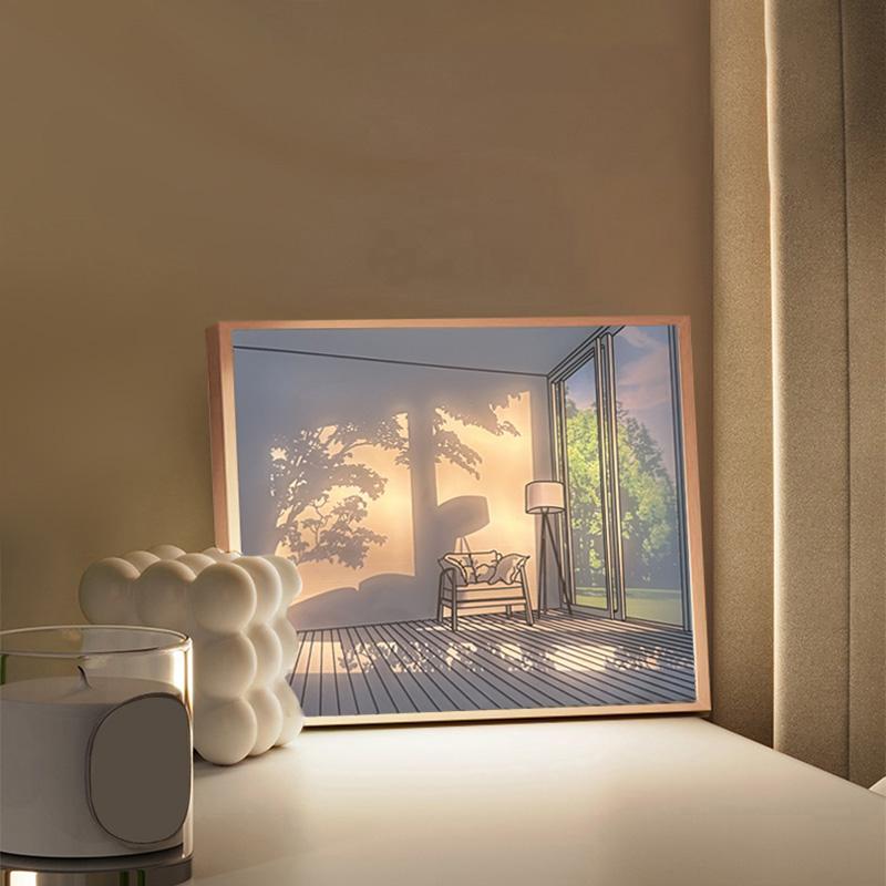INS Deco Led Light Картина USB-разъем Затемнение Настенная работа Настольная лампа Подарок Крытый солнечный свет Окно Деревянное фото Ночное светящееся