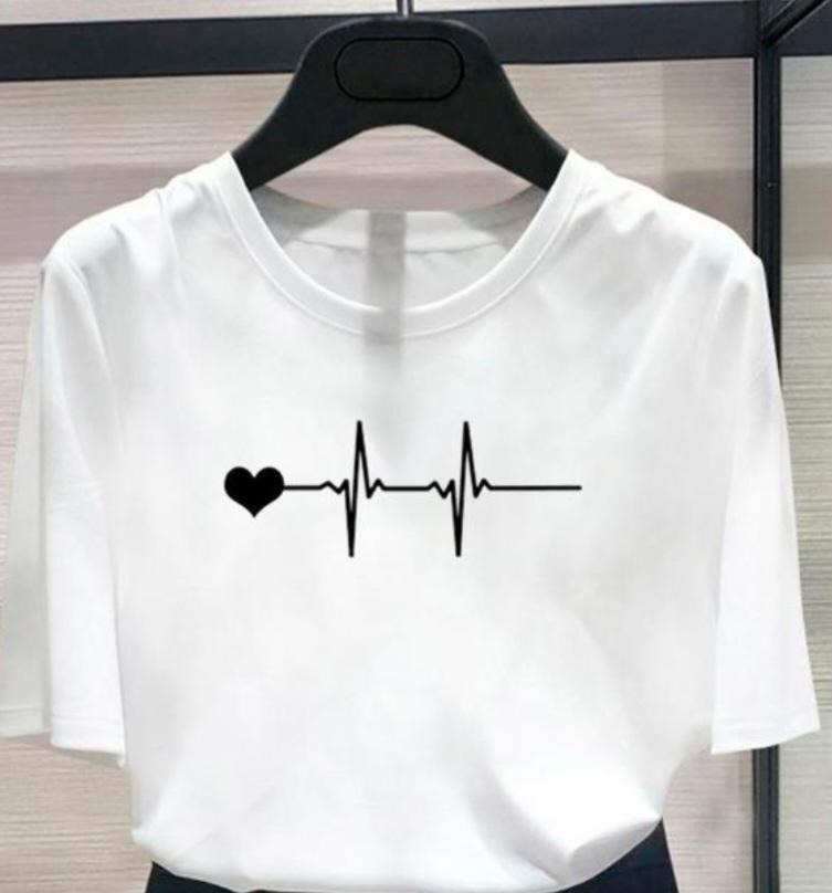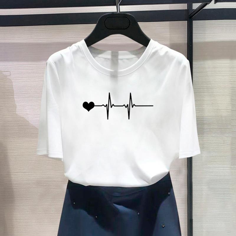 Женская футболка с азиатским размером и принтом «Сердцебиение», милая милая женская футболка, повседневная женская летняя футболка, модная футболка с рисунком, футболка с коротким рукавом