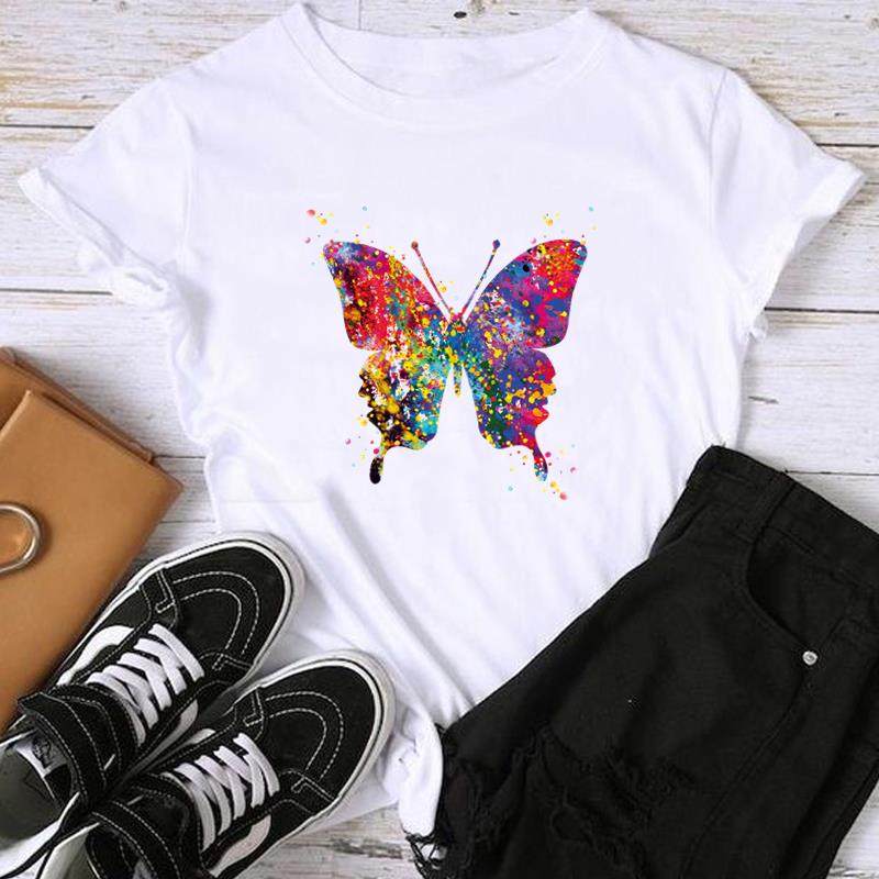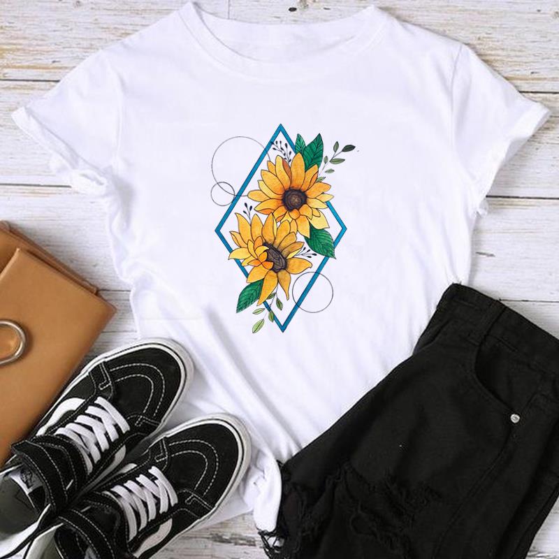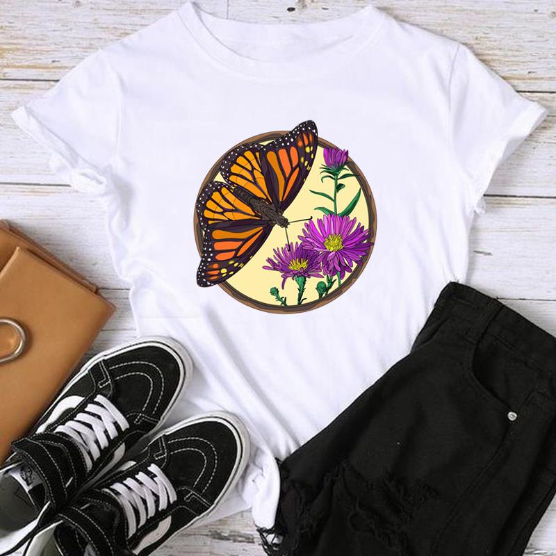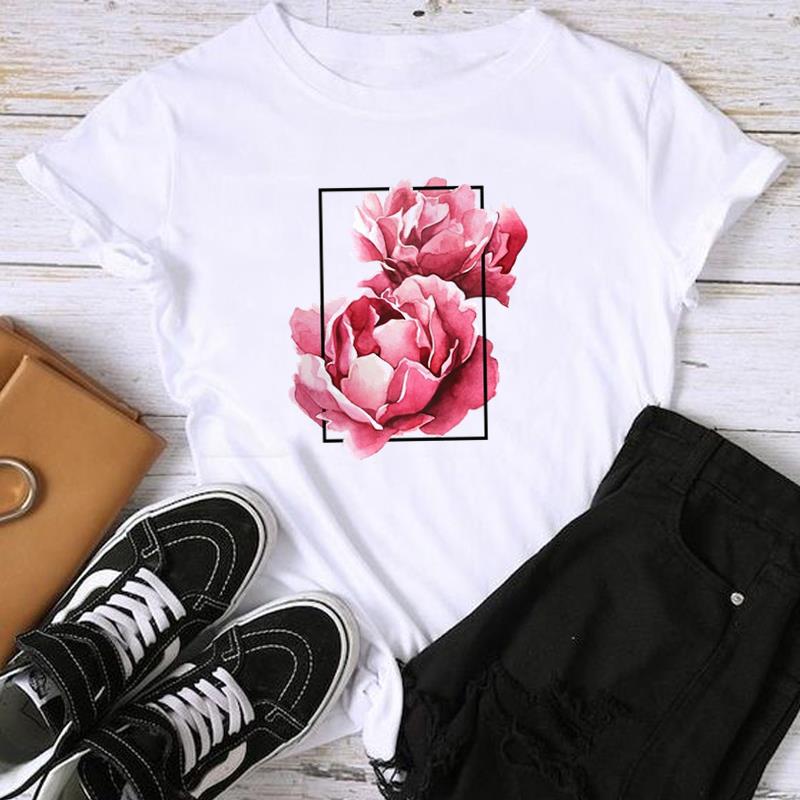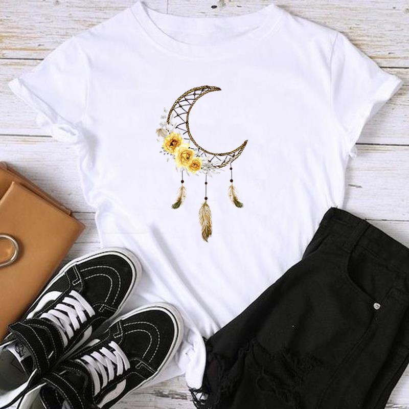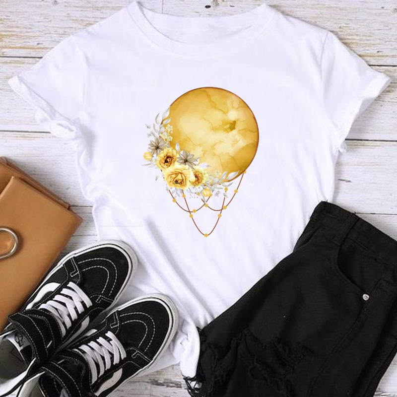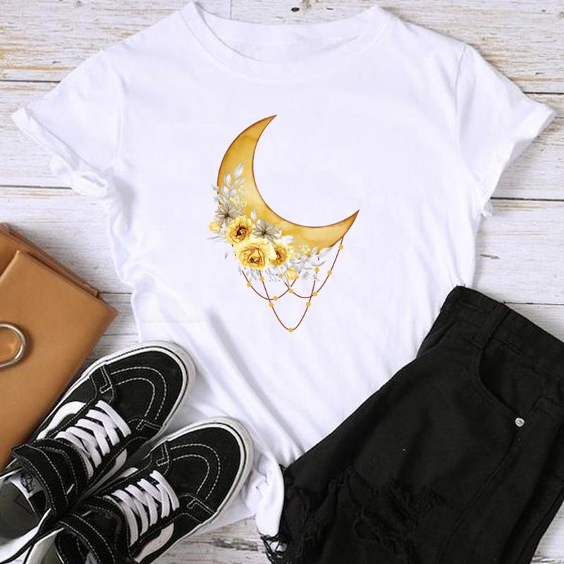 Женская женская футболка с азиатским размером и принтом T Moon в винтажном цветочном стиле, повседневная женская летняя футболка с графическим принтом, модная футболка с коротким рукавом