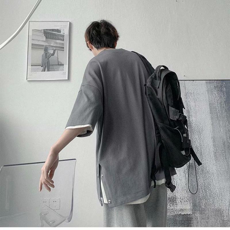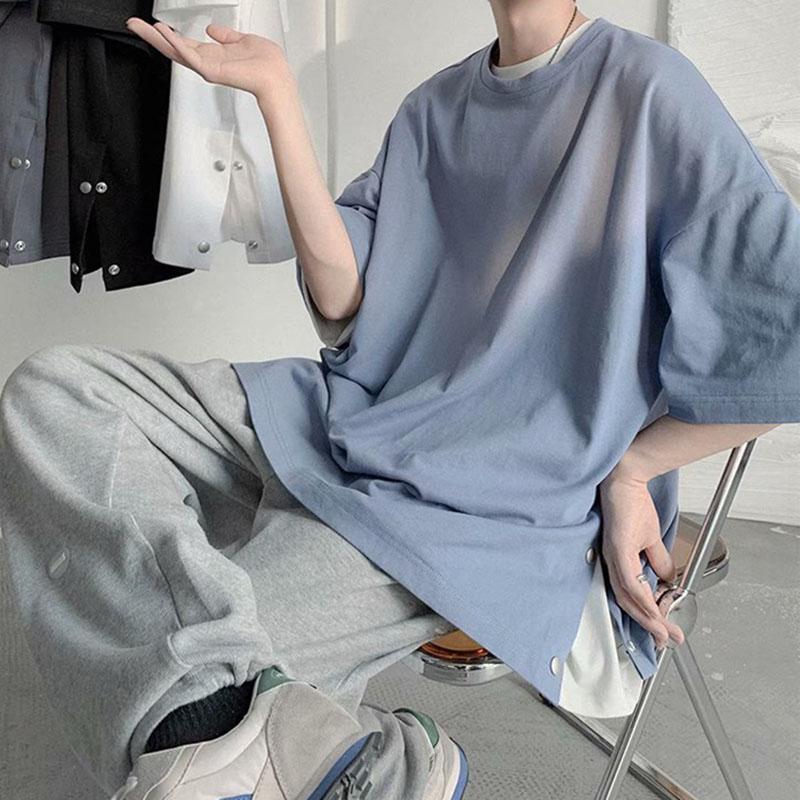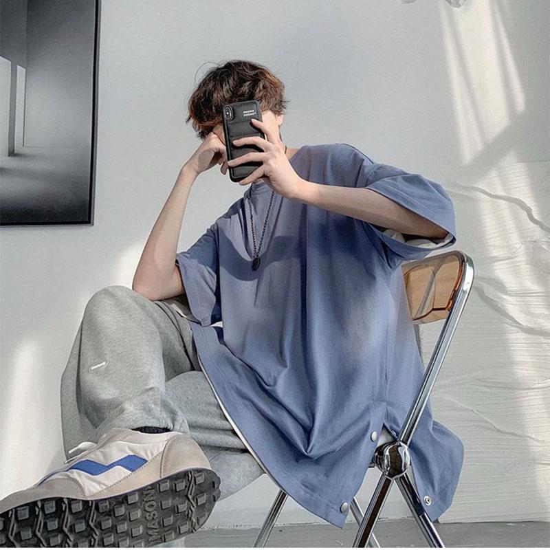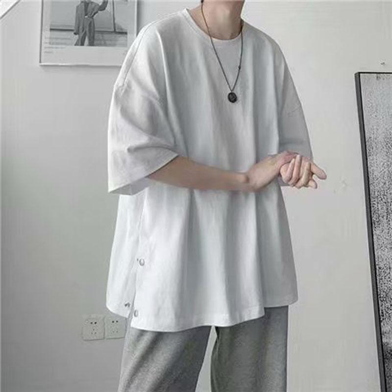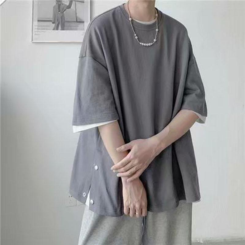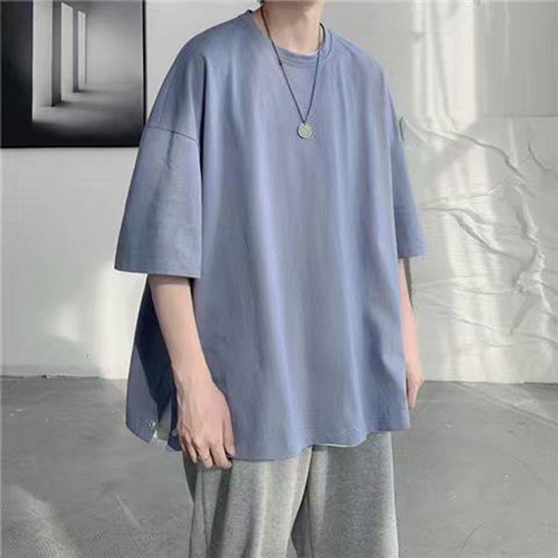Мужская летняя повседневная однотонная уличная футболка с коротким рукавом, топ
