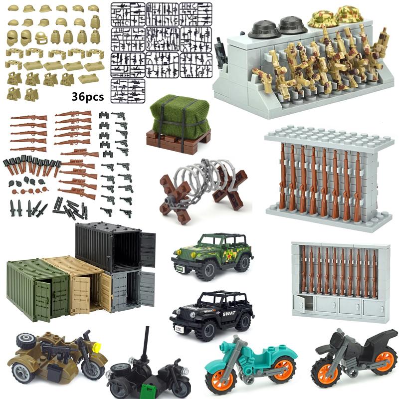 MOC Военный спецназ, оружие WW2, игрушки, пистолет, мешок с песком, пушка, арсенал, строительные блоки, фигурки, оборудование, кирпичи, игрушки для детей