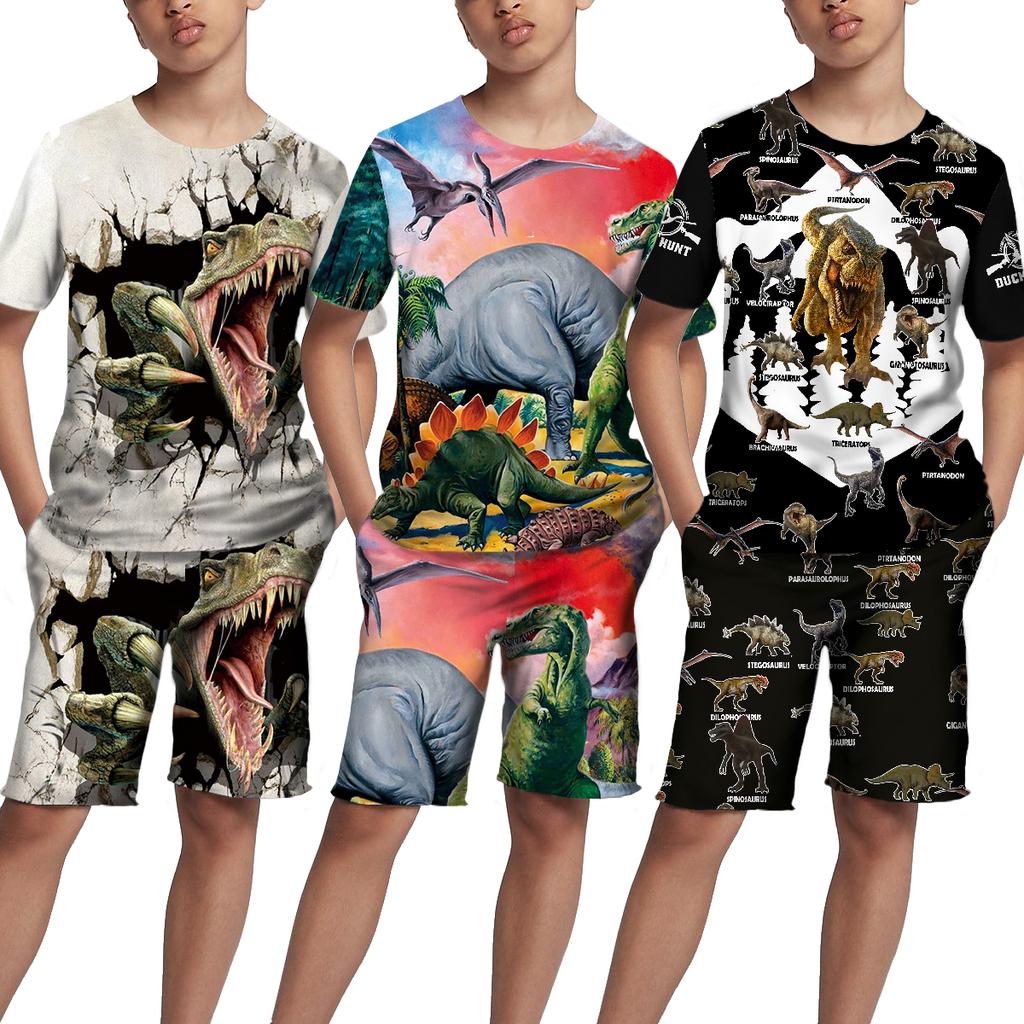 Футболки/костюмы с 3D принтом динозавра Юрского периода для мальчиков и девочек, футболки/костюмы для подростков, повседневная летняя футболка, спортивный костюм, комплект