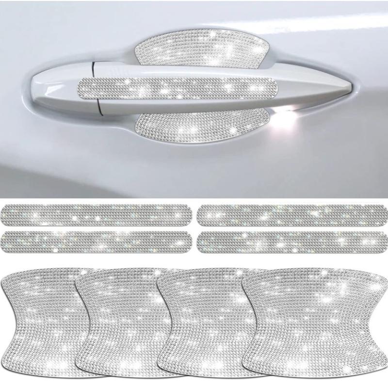 Наклейки на дверные ручки автомобиля со стразами, блестящие наклейки на дверные ручки, защитные наклейки, защитные наклейки на царапины, светоотражающие авто